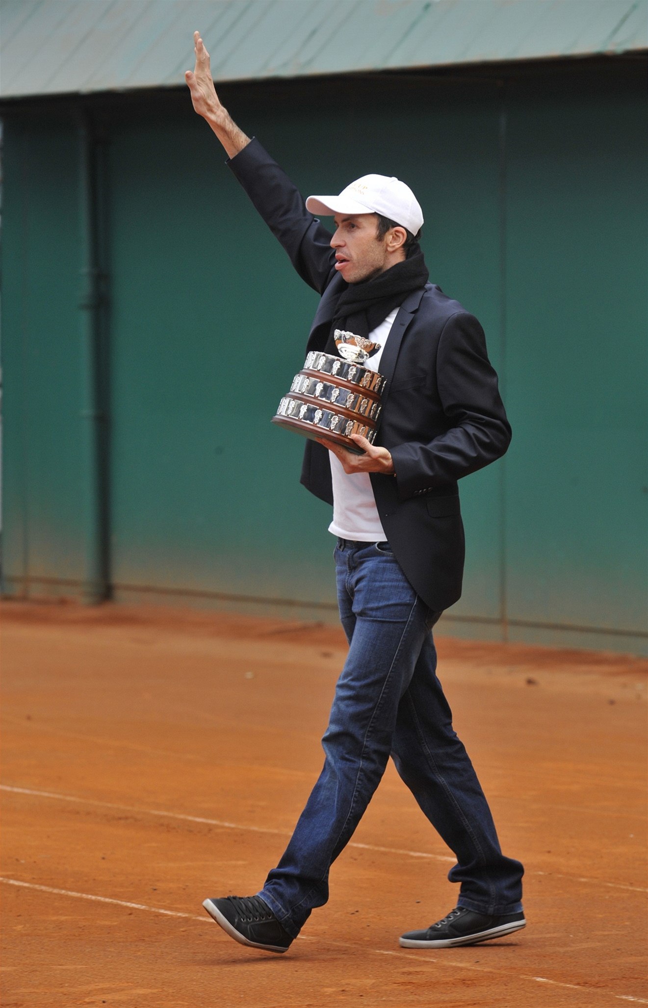Tenisoví hrdinové slaví v Prostějově vítězství ve finále Davis Cupu. Na snímku je Radek Štěpánek