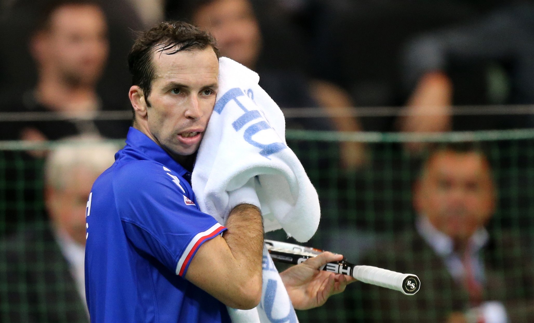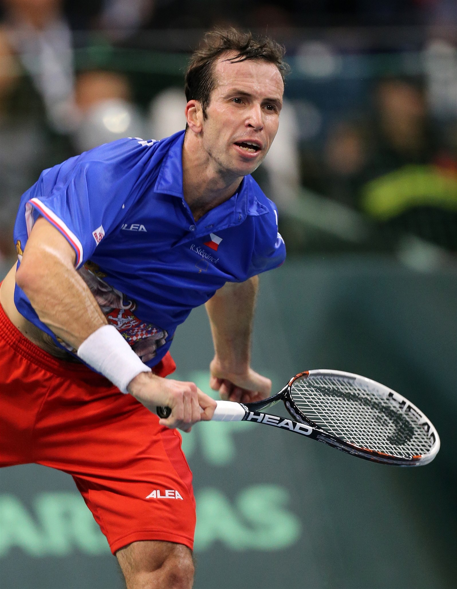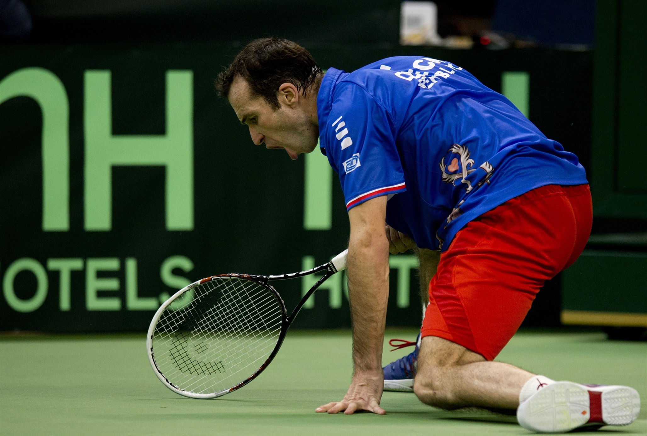Dřina. Radek Štěpánek ve finále Davis Cupu proti Djokovičovi.