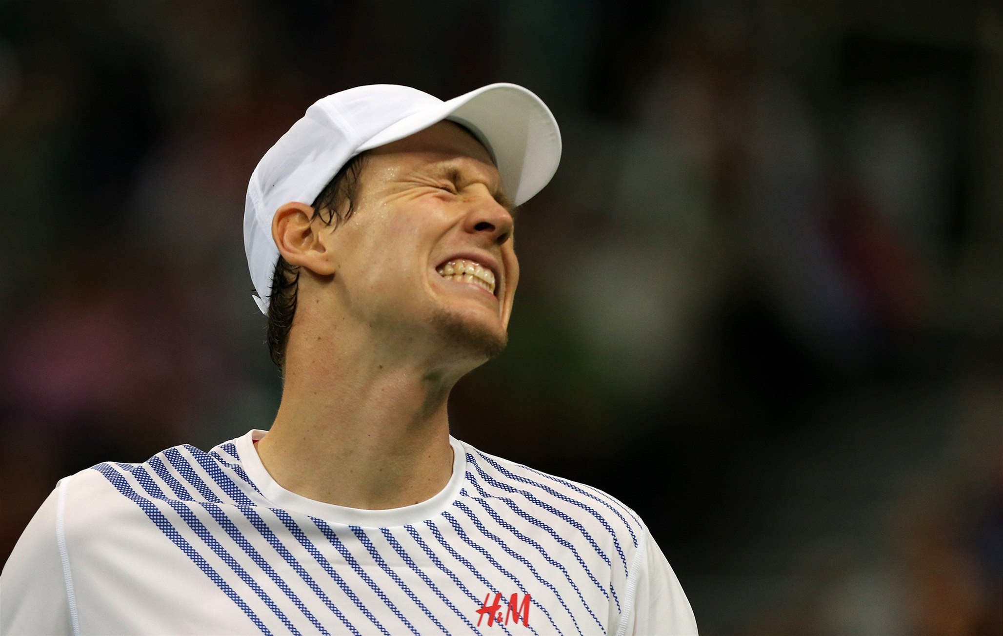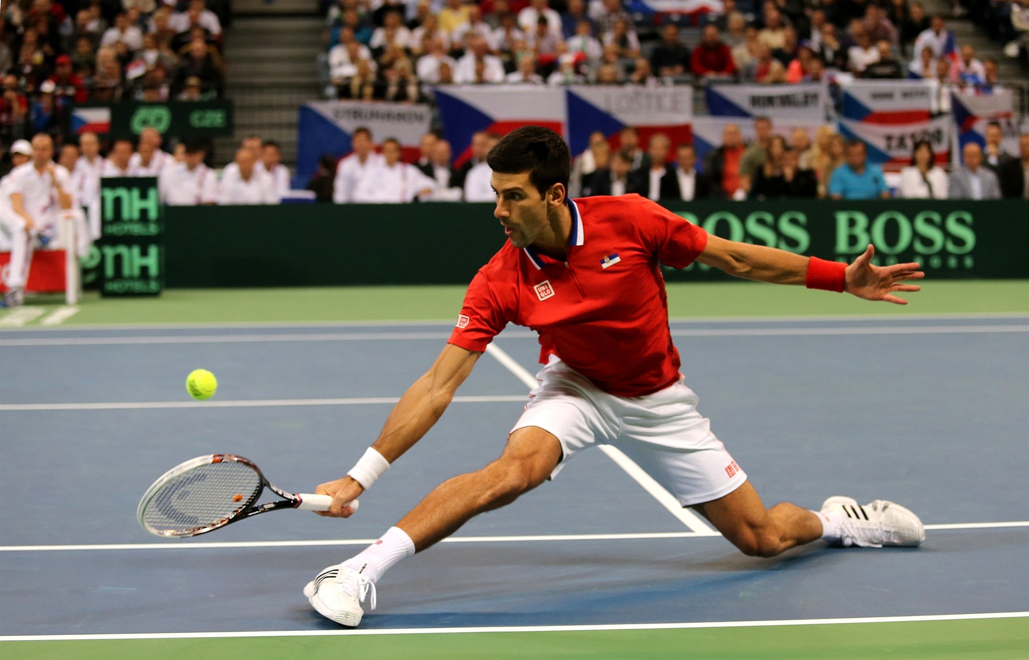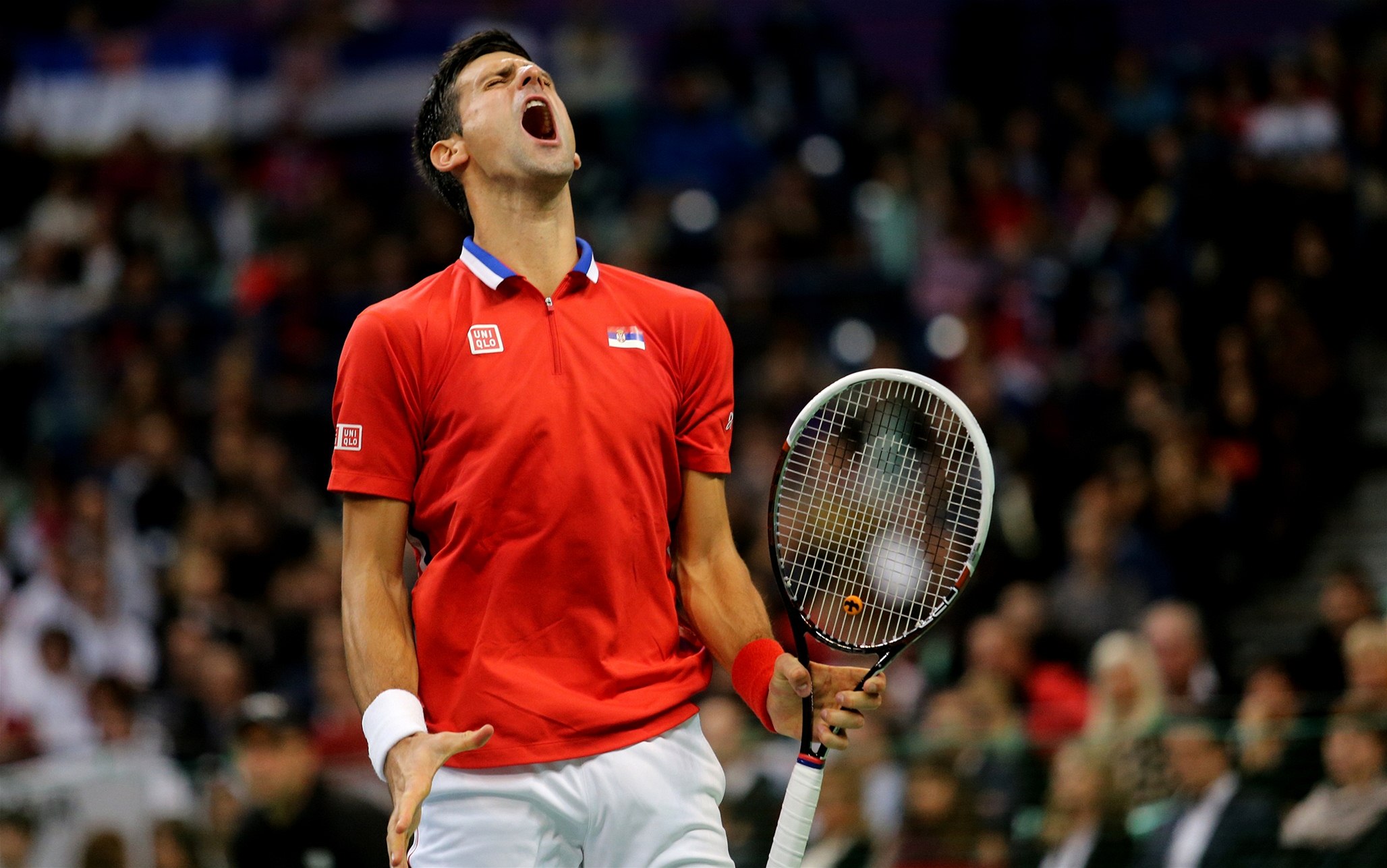 Dřina. Radek Štěpánek ve finále Davis Cupu proti Djokovičovi.