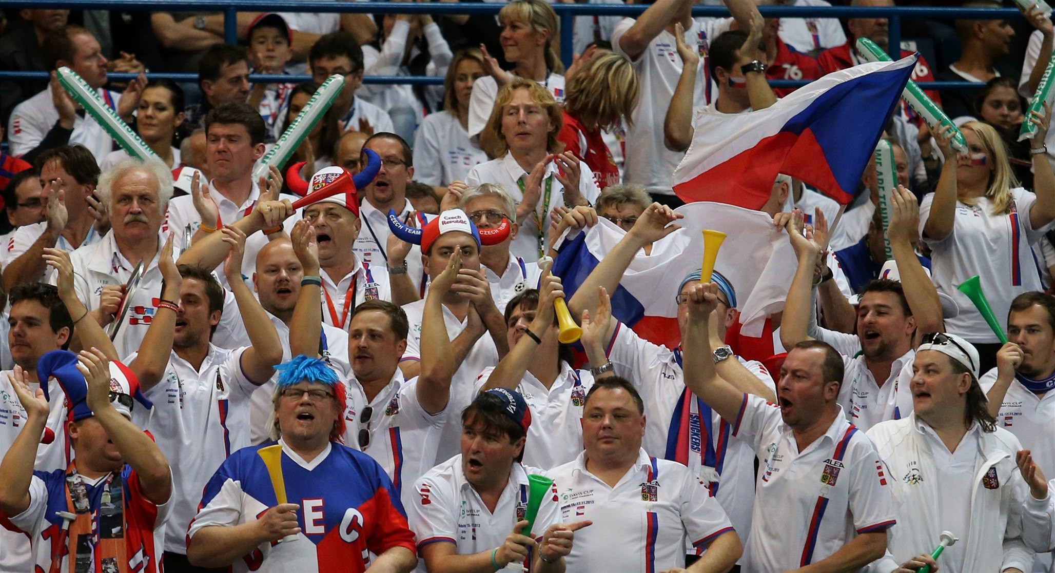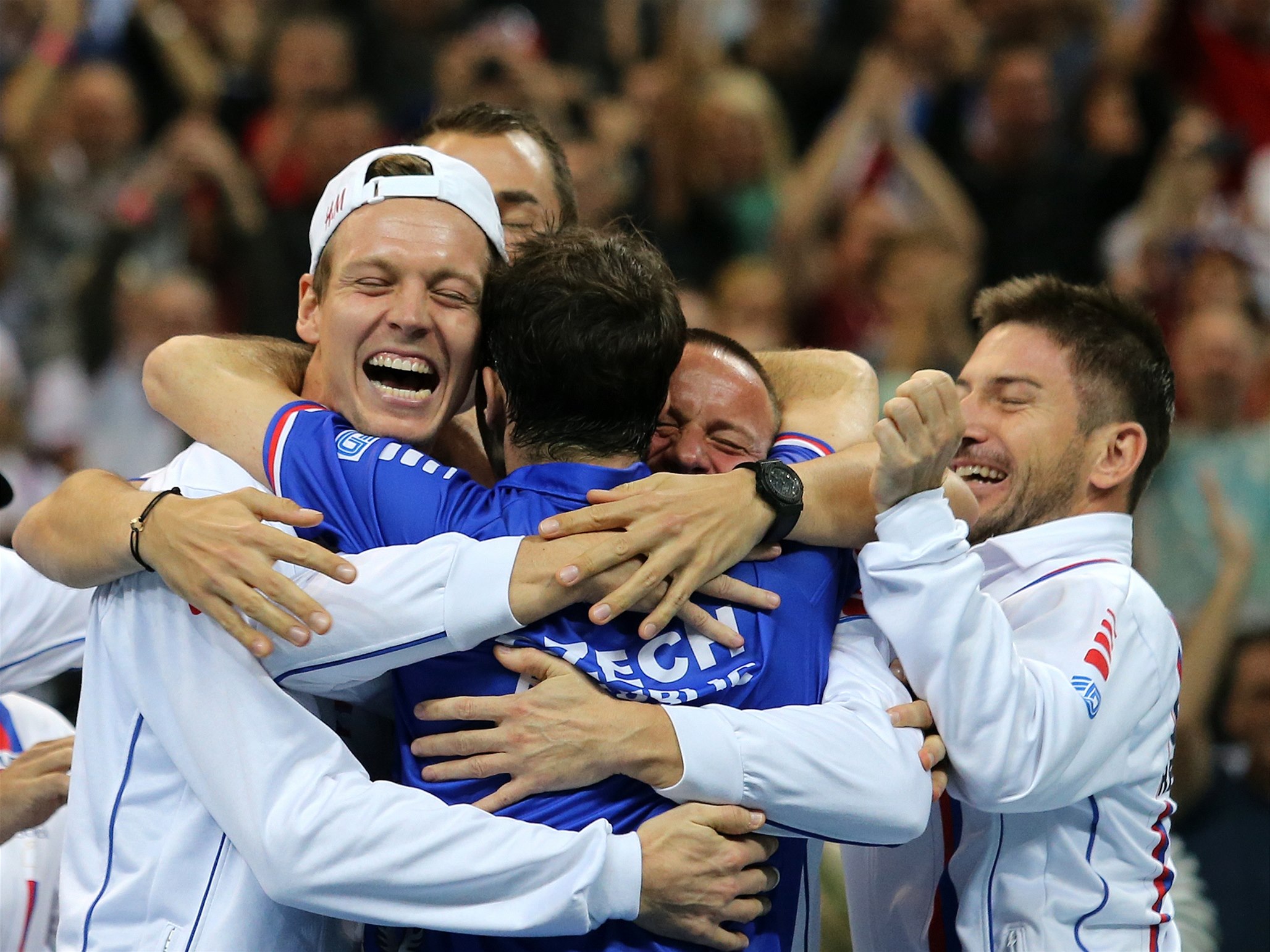 Čeští tenisté slaví v Prostějově daviscupový triumf.