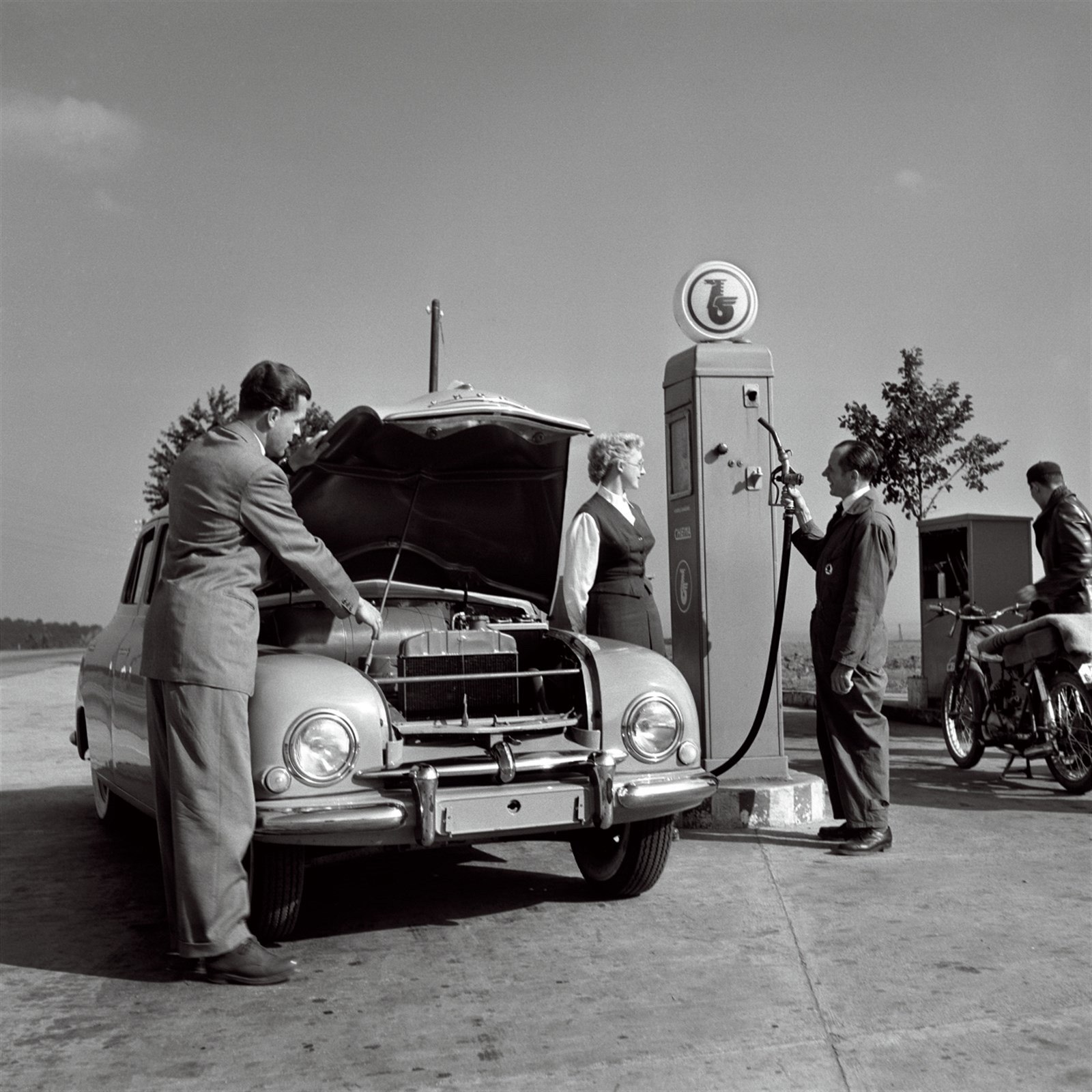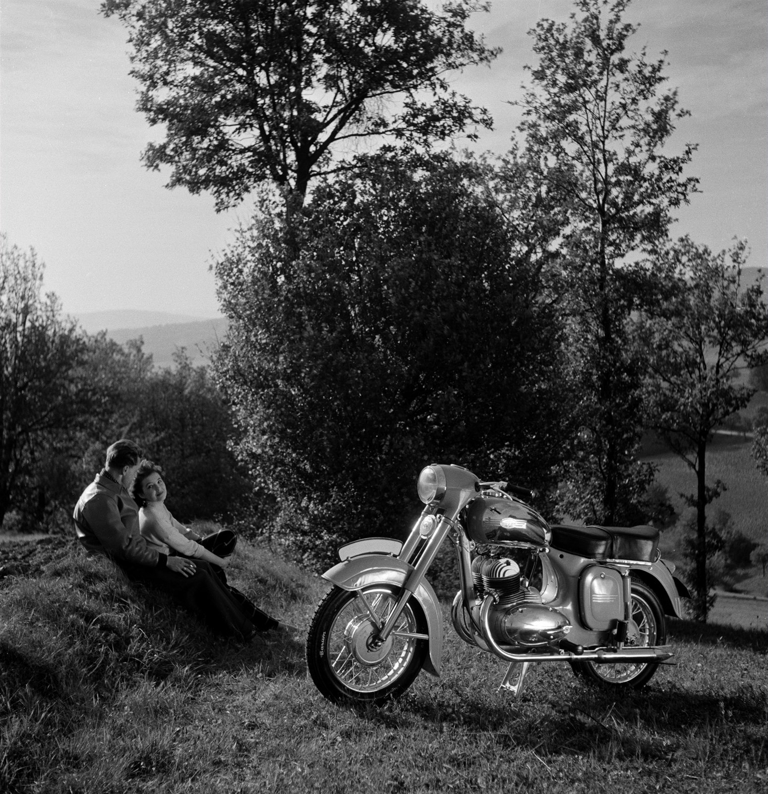 Reklamní fotografie motocyklu. Ukázka z výstavy Vilém Heckel 100, kterou zorganizovalo Západočeské muzeum v Plzni.