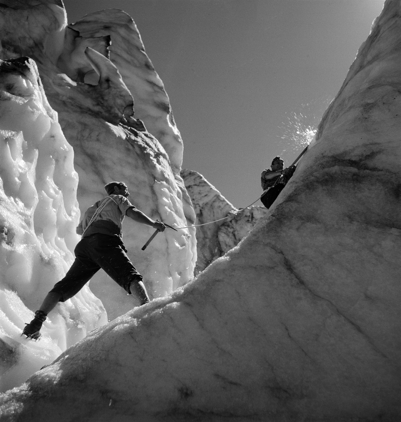 Neštěstí si vyžádalo život všech 15 členů československé expedice. (Zdolávání ledové stěny. Ukázka z výstavy Vilém Heckel 100, kterou uvede Západočeské muzeum v Plzni.)