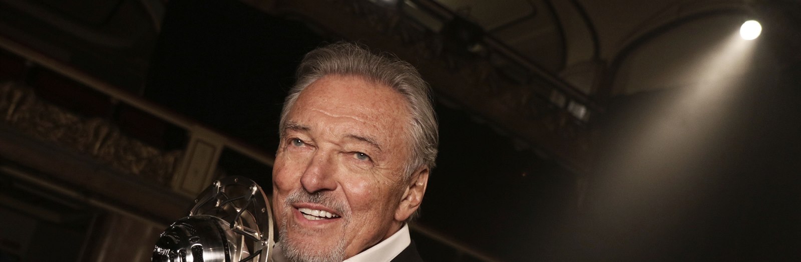 Slavnostní vyhlášení hudebních cen Český Slavík, 50.ročník. Nemocný Karel Gott přišel převzít cenu za zpěváka roku a platinového slavíka