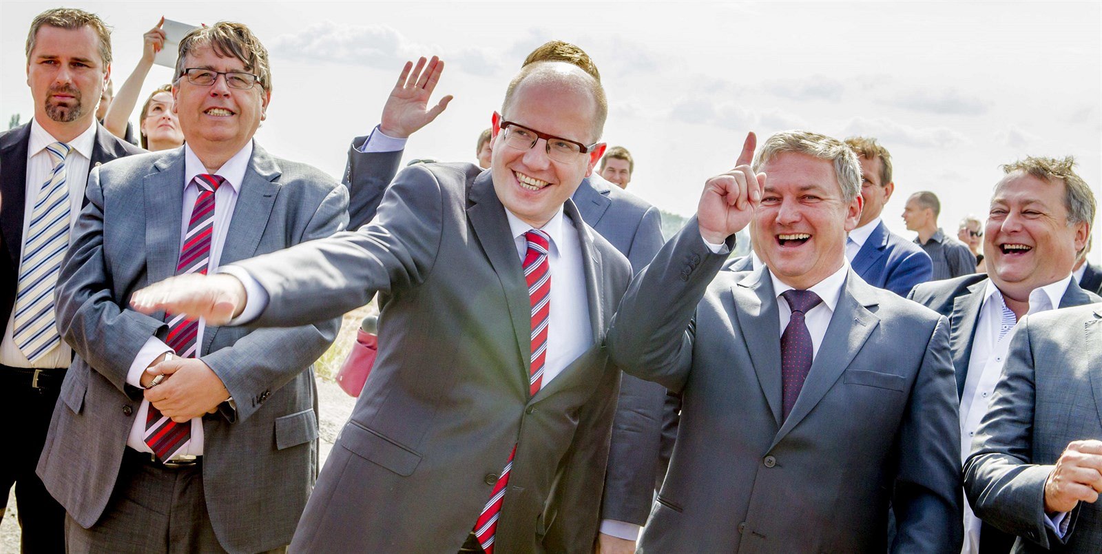 Premiér Sobotka při slavnostním zahájení dostavby dálnice D11 u Hradce Králové.