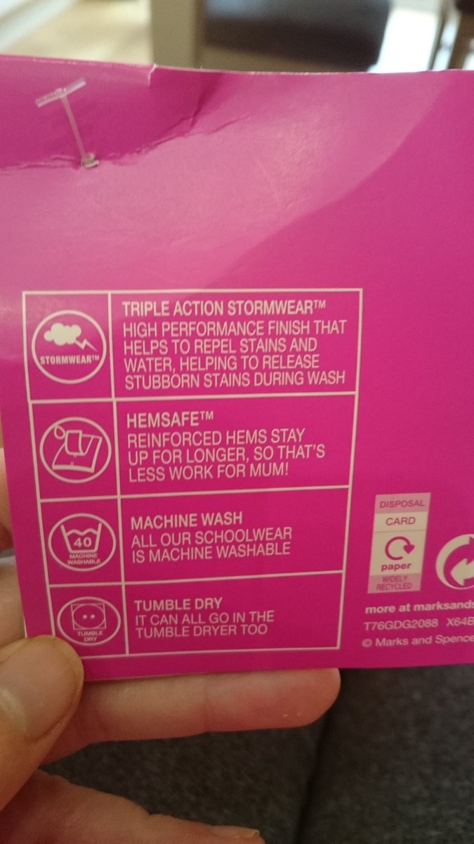 Na Twitteru se objevil obrázek etikety, kterou řetězec použil u více druhů školního oblečení pro chlapce i dívky. „Zesílené okraje déle vydrží, takže maminka bude mít méně práce“.