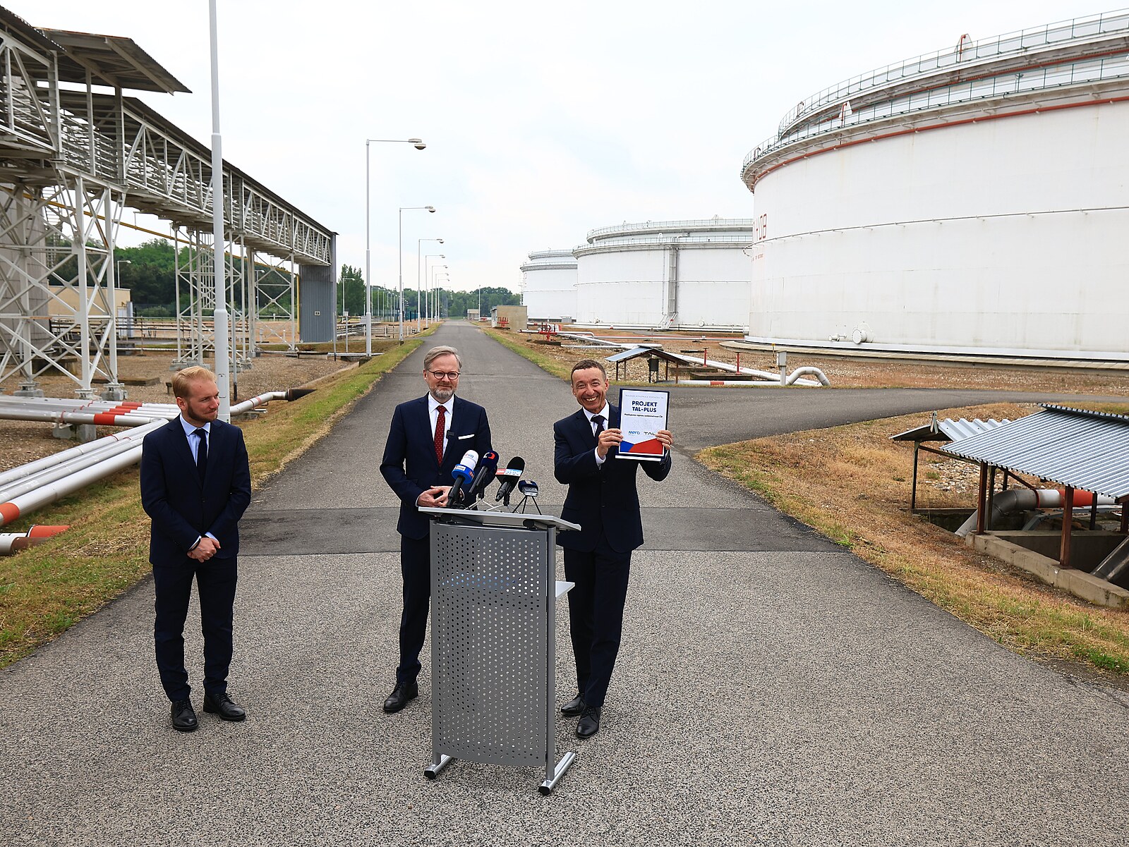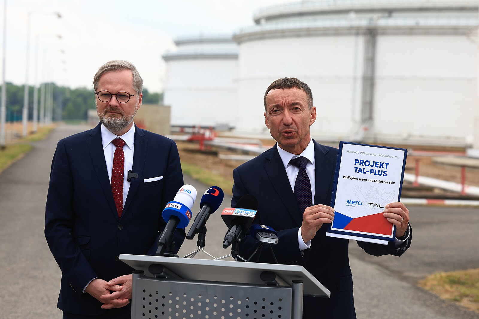 Premiér Petr Fiala navštívil centrální tankoviště ropy ve společnost Mero ČR, a.s. v Nelahozevsi. (23. května 2023)