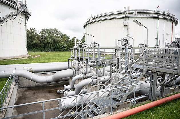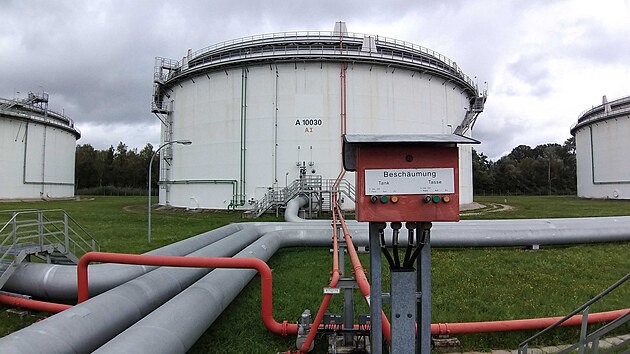 Celková kapacita nádrží na tankovišti MERO GERMANY v bavorském Vohburgu an der Donau je 200 tisíc metrů kubických ropy. (9. září 2024)