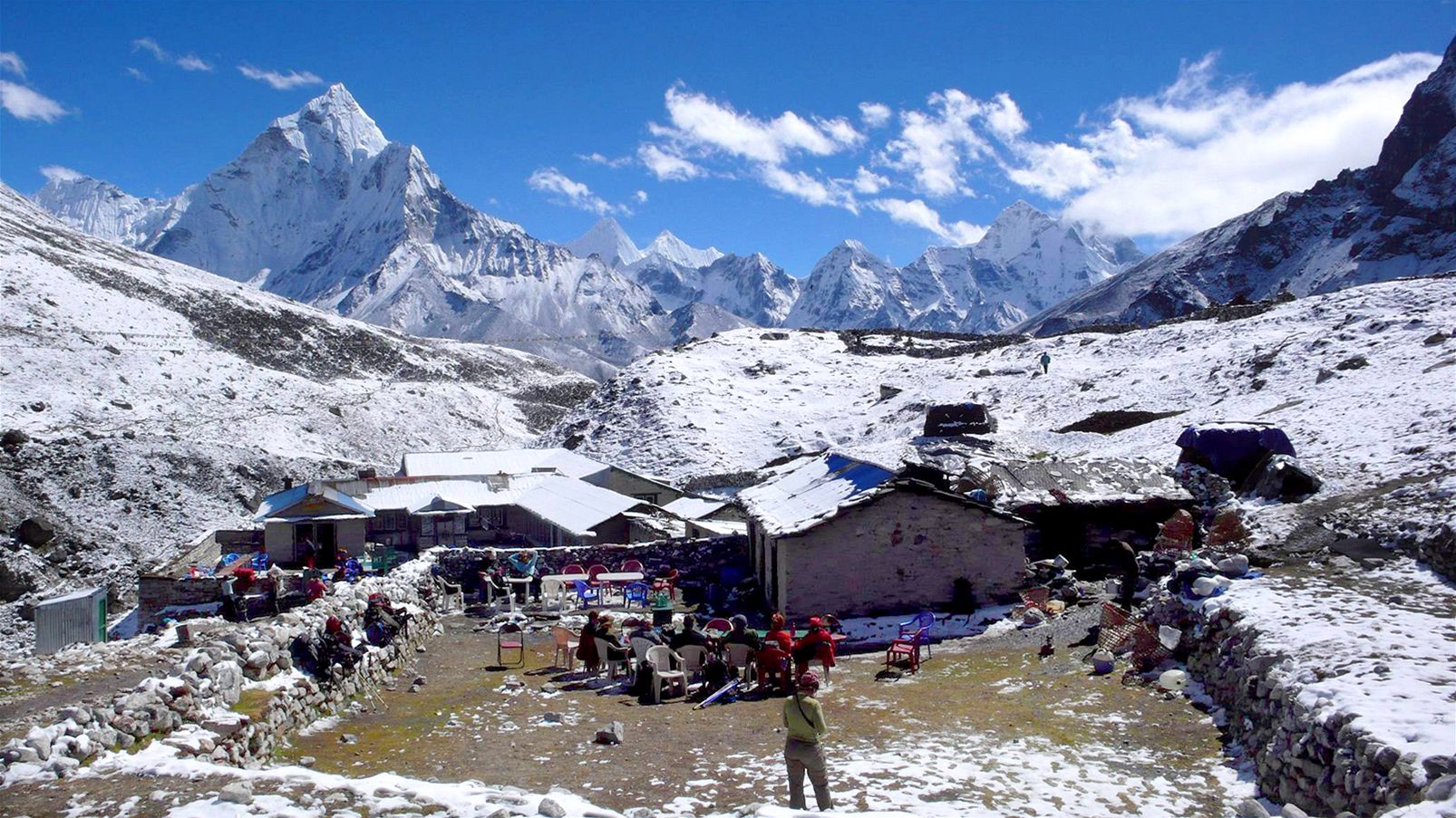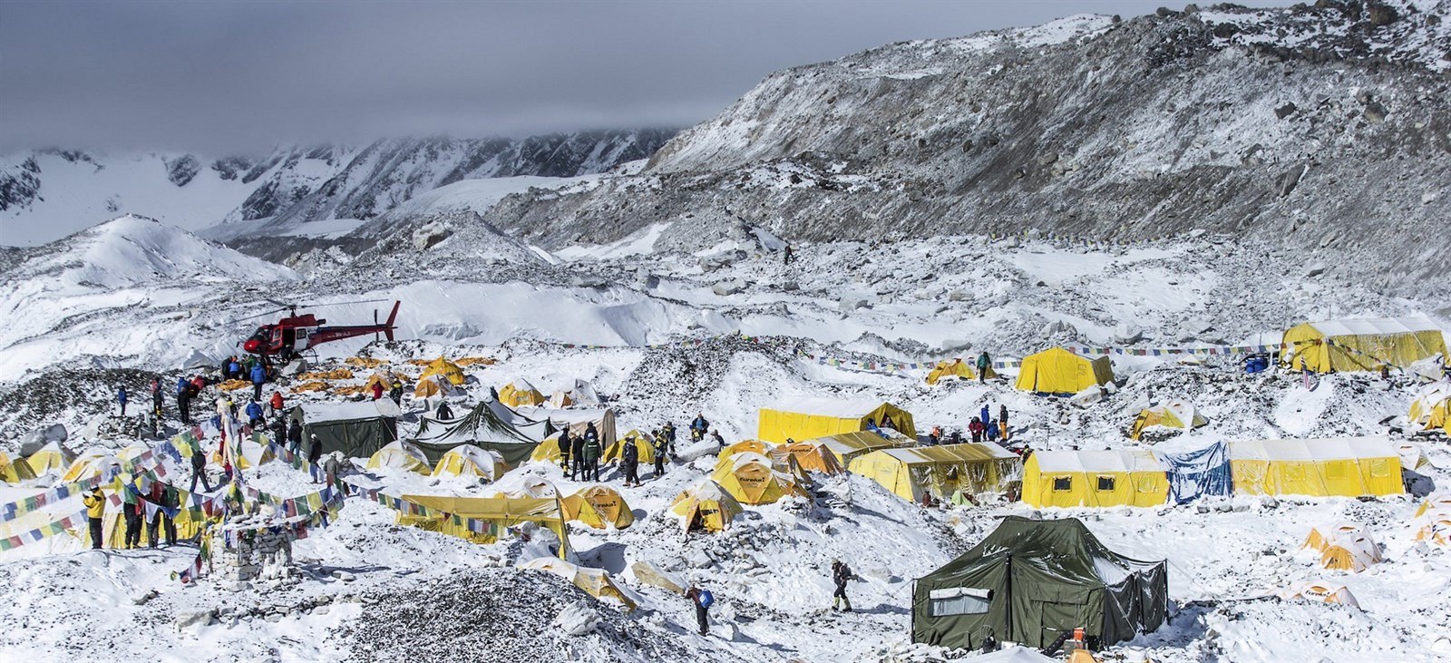 Pohled na základní tábor pod Mount Everestem po ničivém zemětřesení (27. dubna 2015)