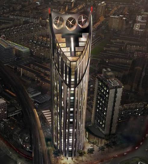 Budova v Londýně navržená skupinou Hamiltons Architects má větrníky na střeše
