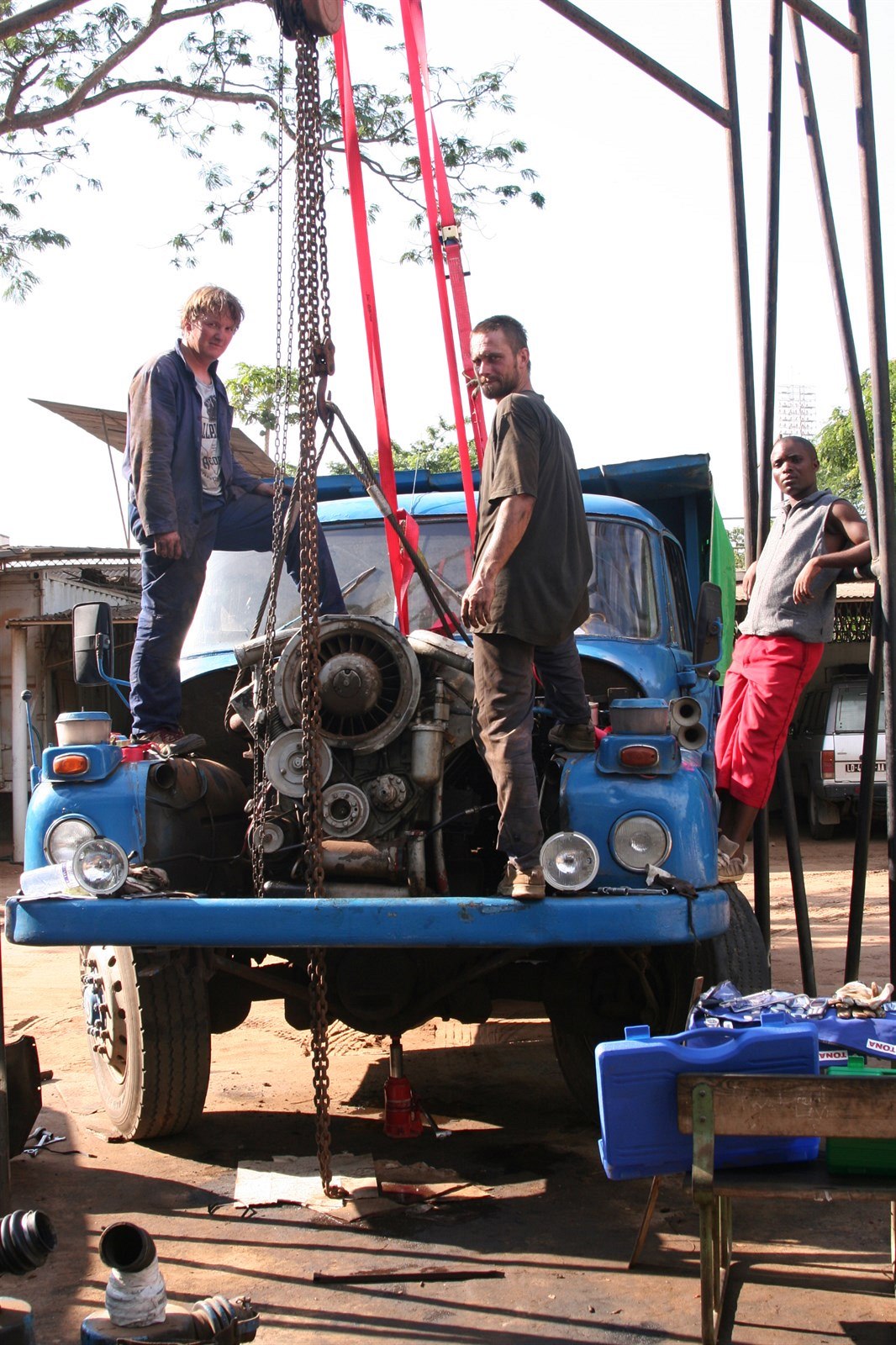 Angolané při výměně kabiny.