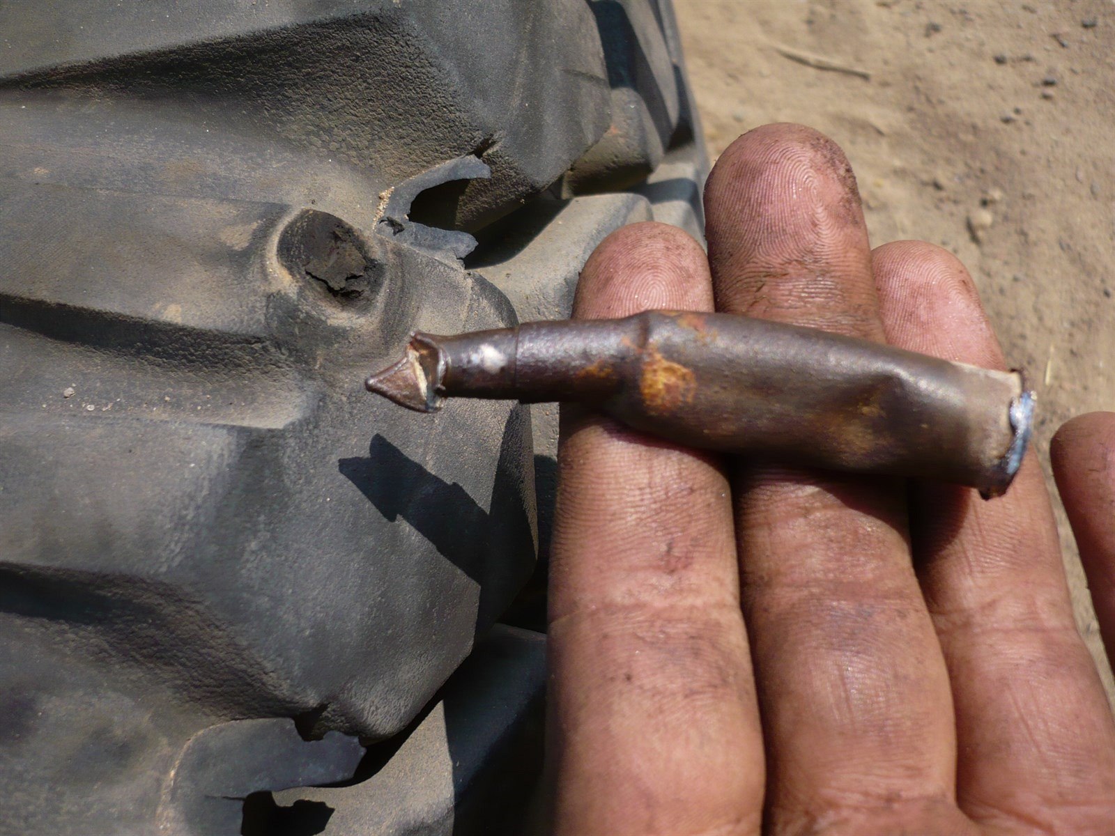 Nevystřelená patrona, díky které píchla pneumatika.