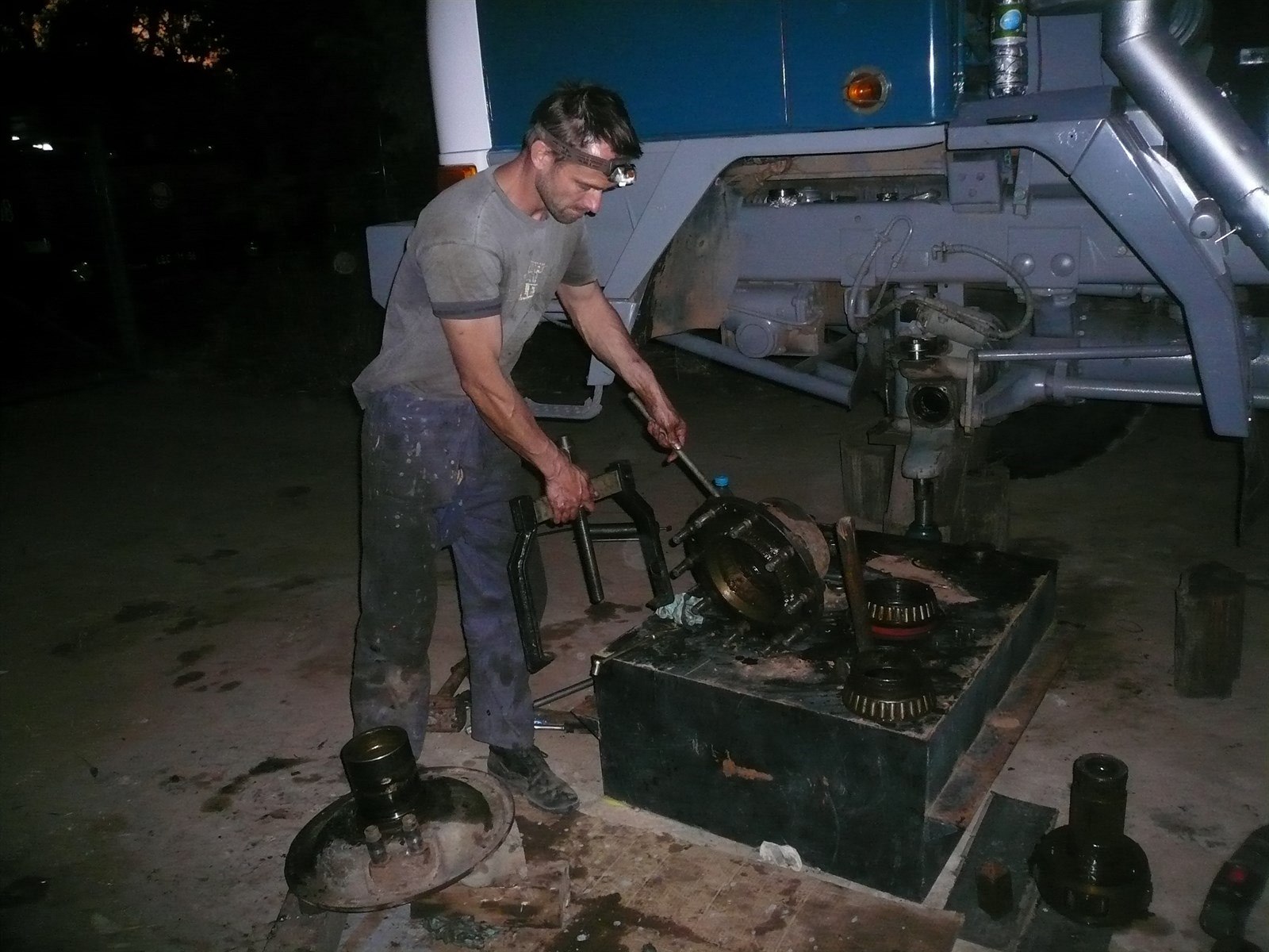 Petr Holeček při opravě Tatry 148.