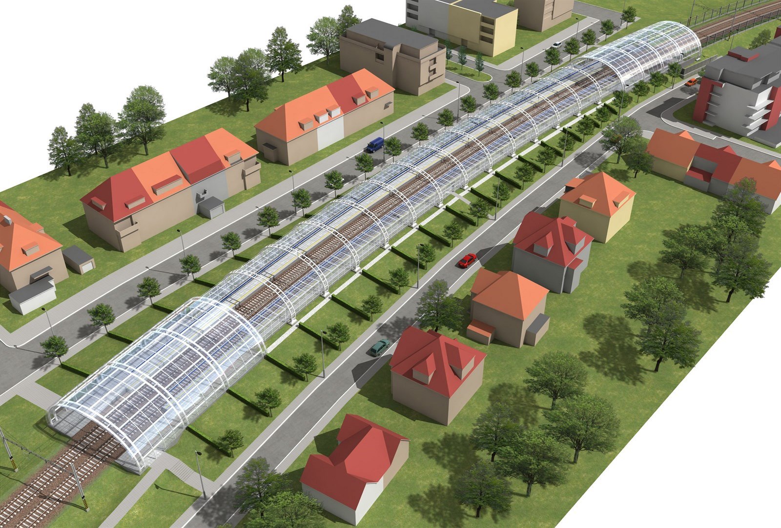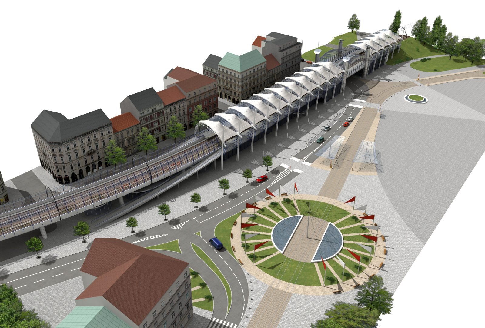 Vizualizace zastřešení Masarykova nádraží v Praze.