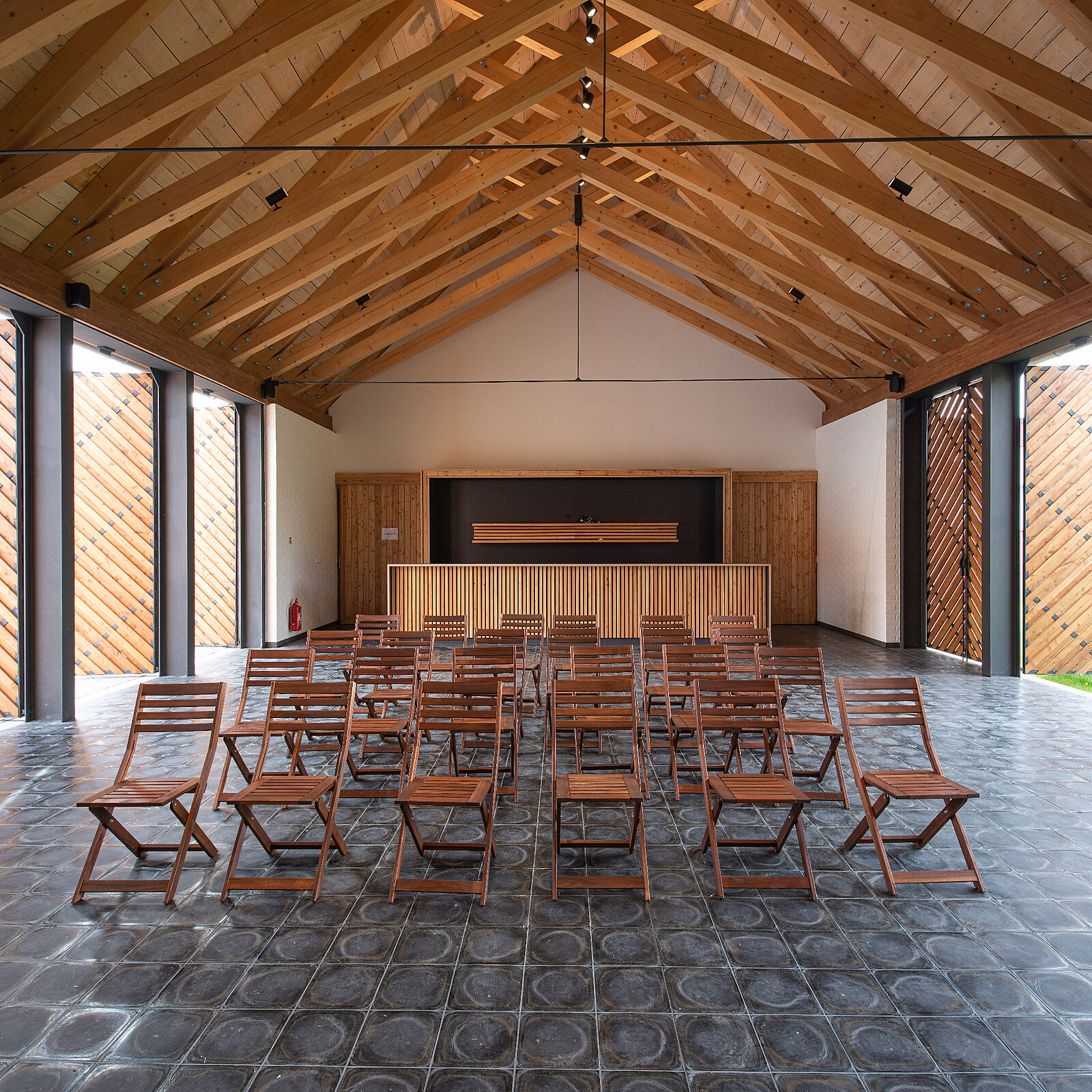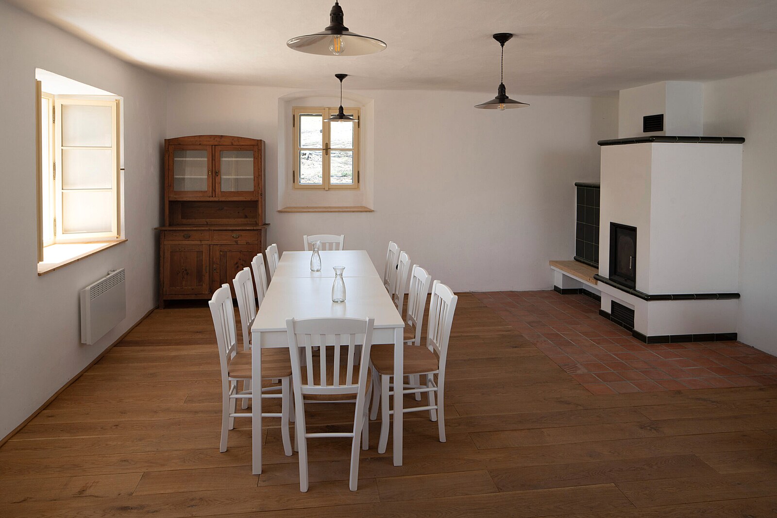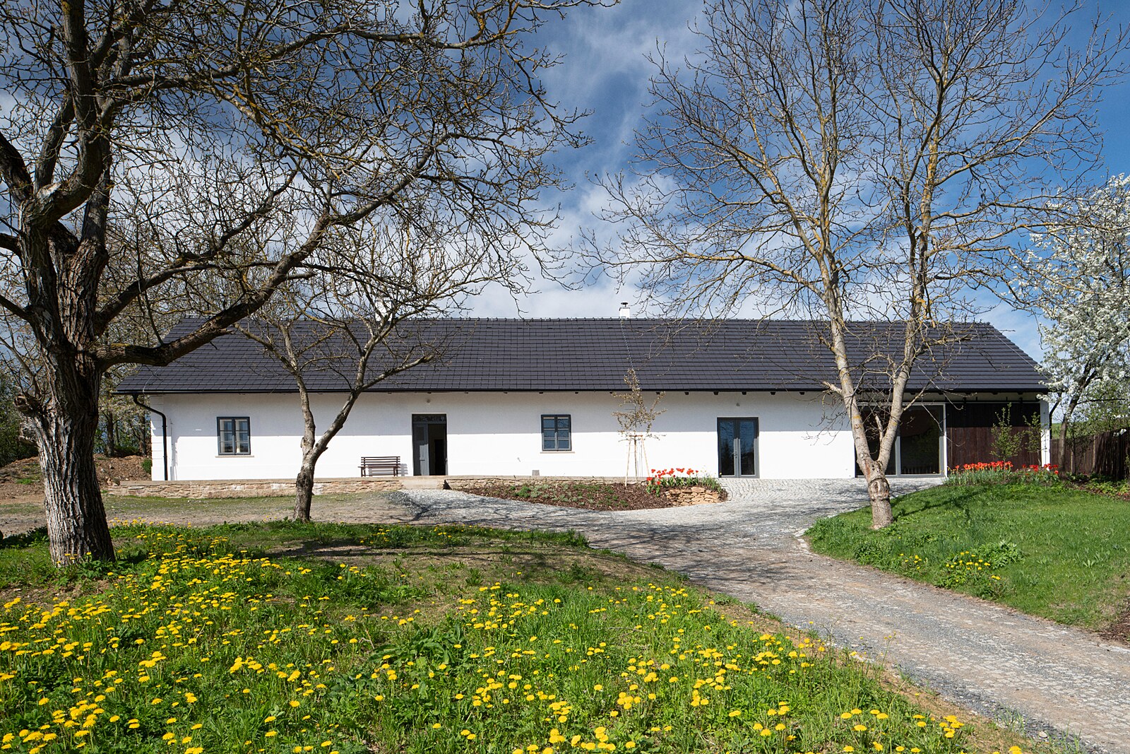 Opatovice: Z celého komunitního objektu silně dýchá jeho původní duch (nahoře). Autoři se snažili zachovat co nejvíce prvků původního stavení, jedním z nich je například tradiční štít venkovské chalupy nebo původní kachlová kamna.
