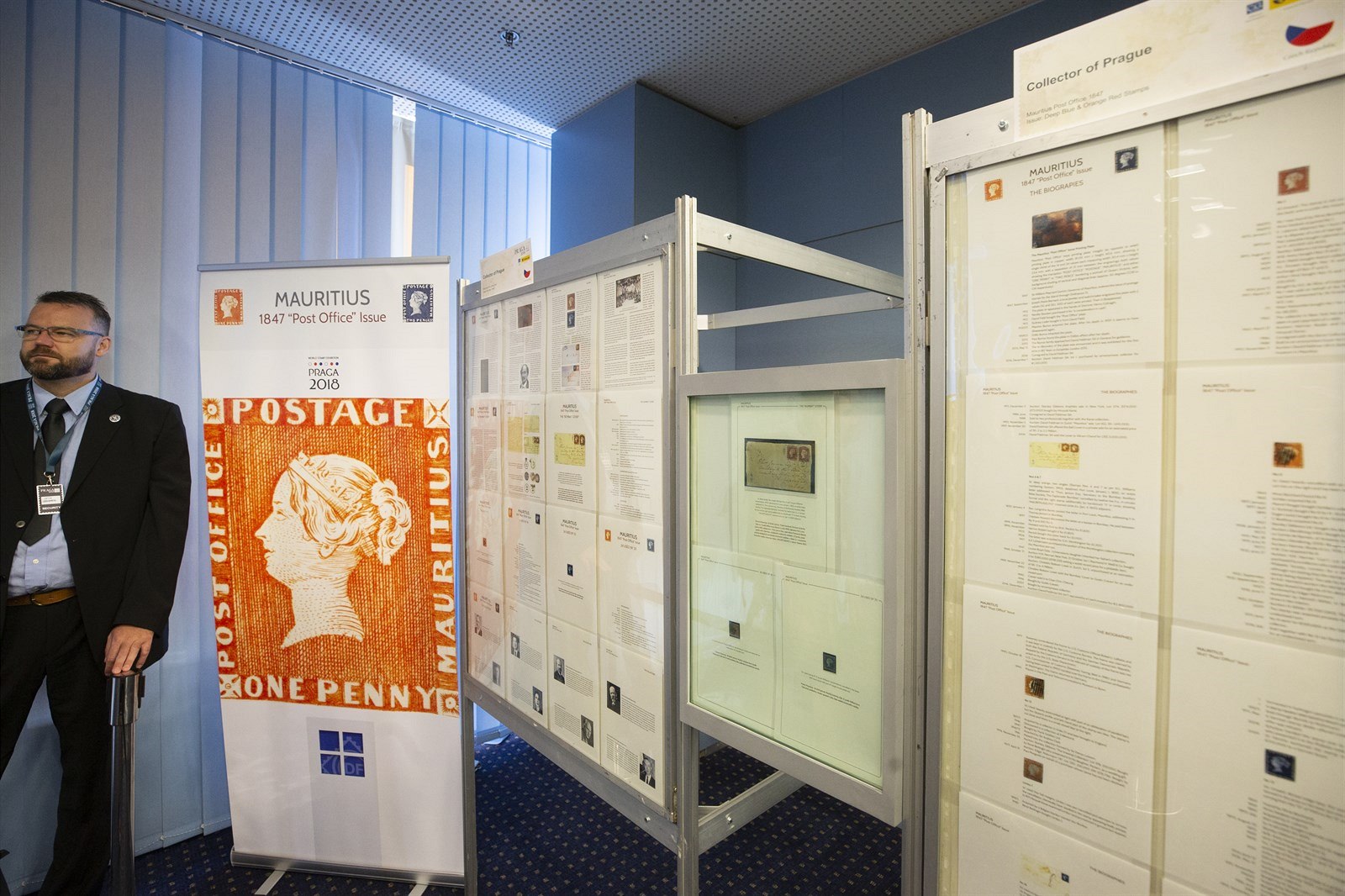 Červený Mauricius s modrým Mauriciem ze sbírky českého investora.