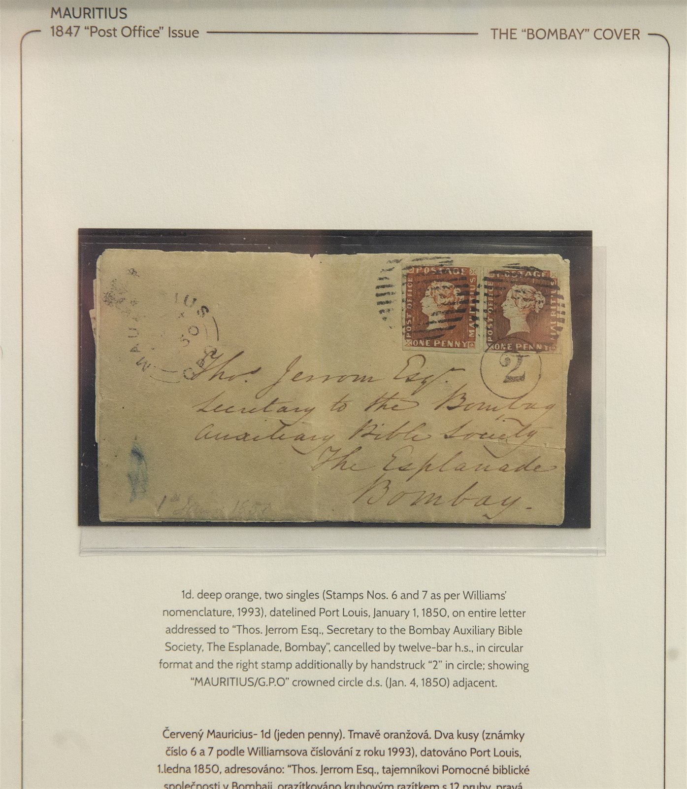 Takzvaný Bombajský dopis se dvěma červenými Mauricii.