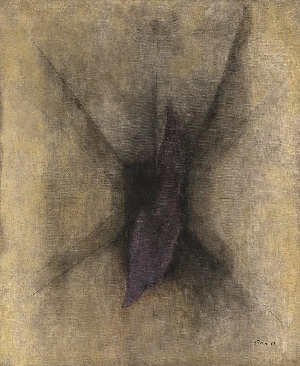 Josef Šíma: Slepá ulička s červeným tělem (1968), olej, plátno, 61 x 50 cm.