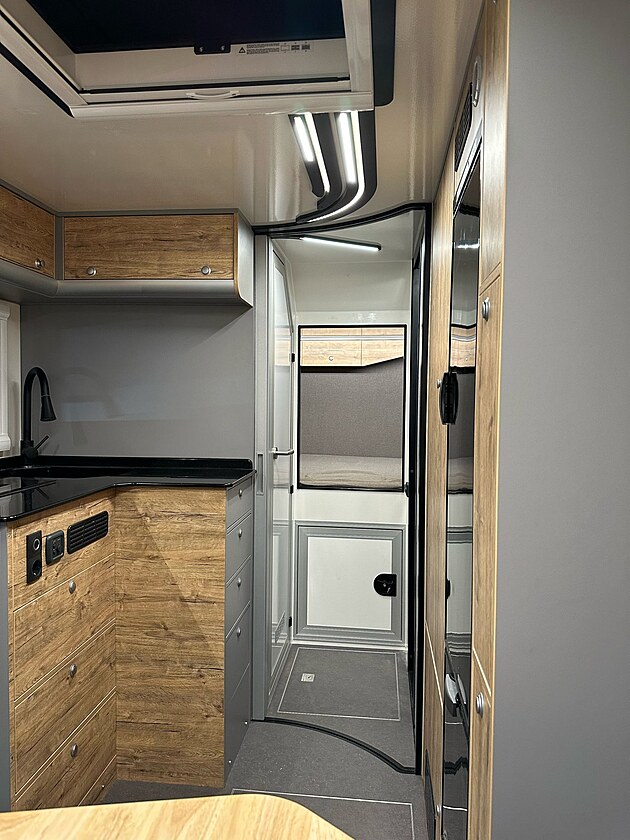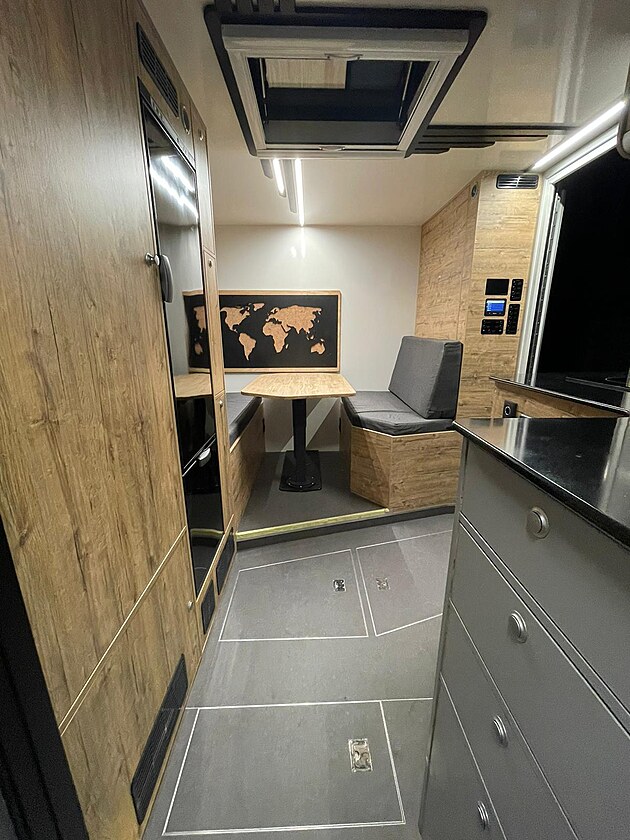 Mercedes-Benz Actros 4x4 v expediční úpravě od jičínské společnosti VejnyWood, pohled do interiéru obytné části