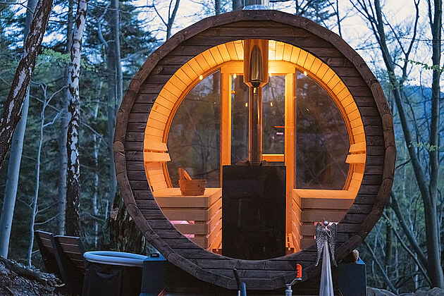 Hlavní sezona pro glamping je mezi dubnem a říjnem. Do wellness části nového beskydského glampingu V lomu patří sauna s unikátním výhledem do krajiny.