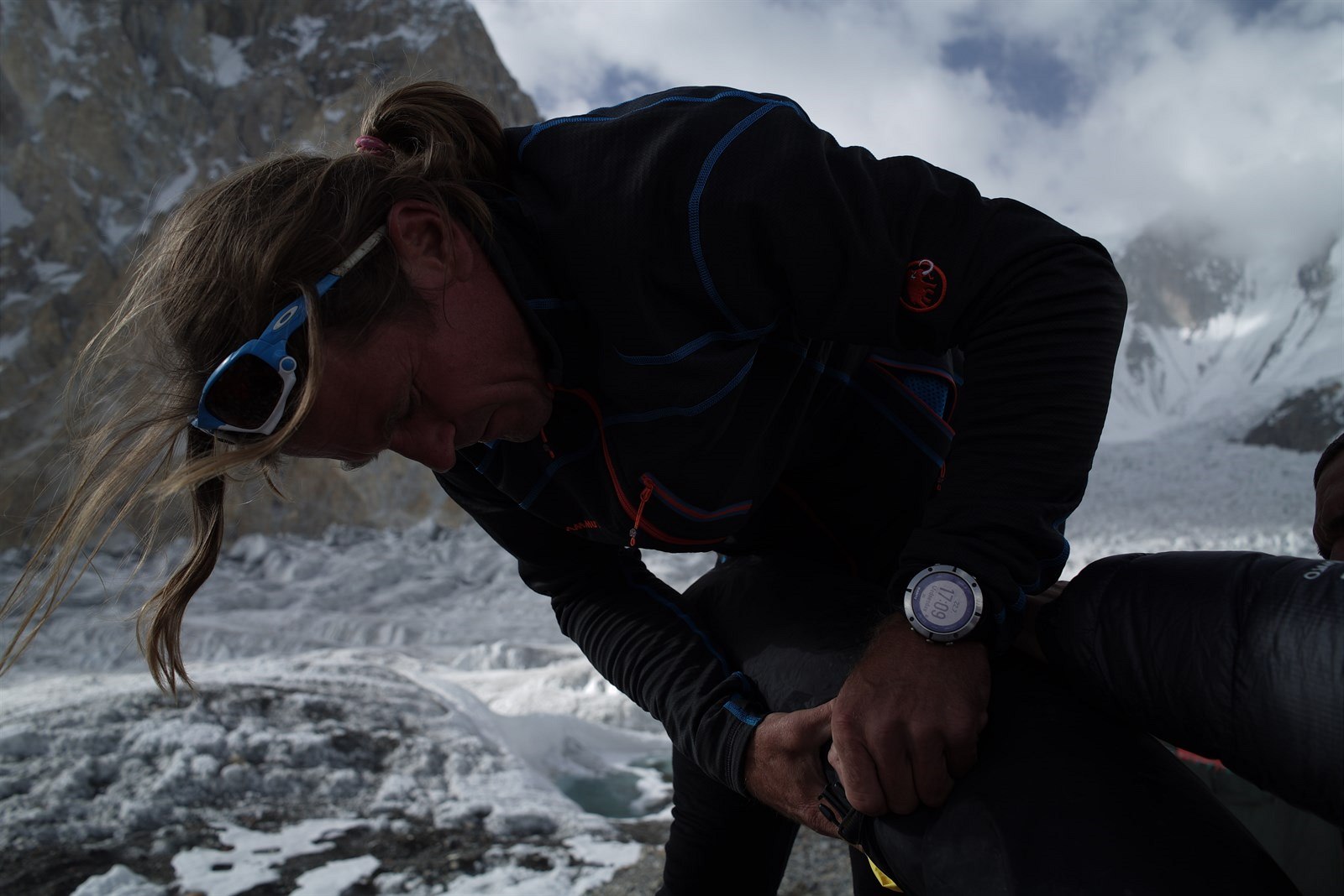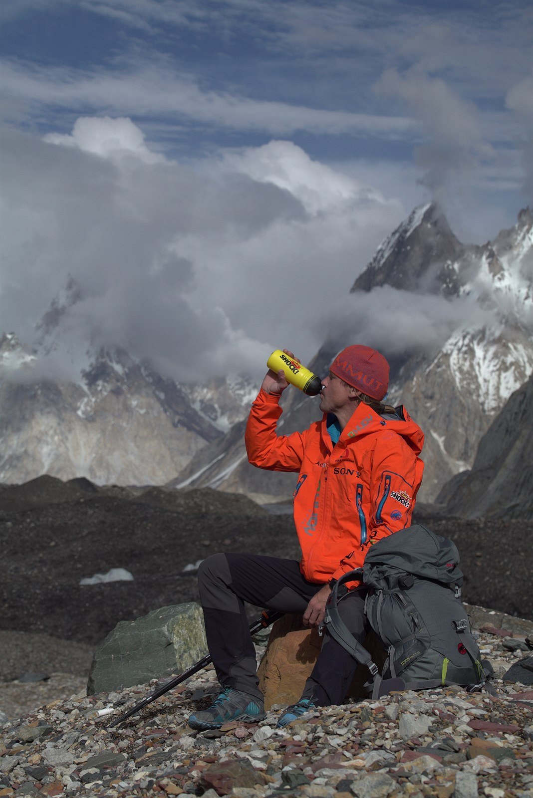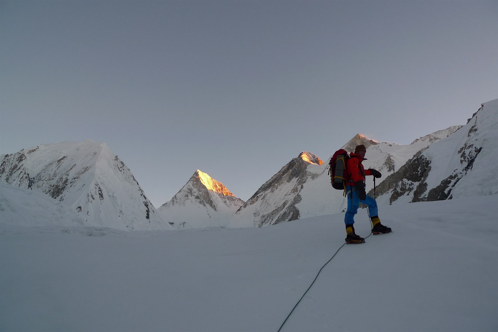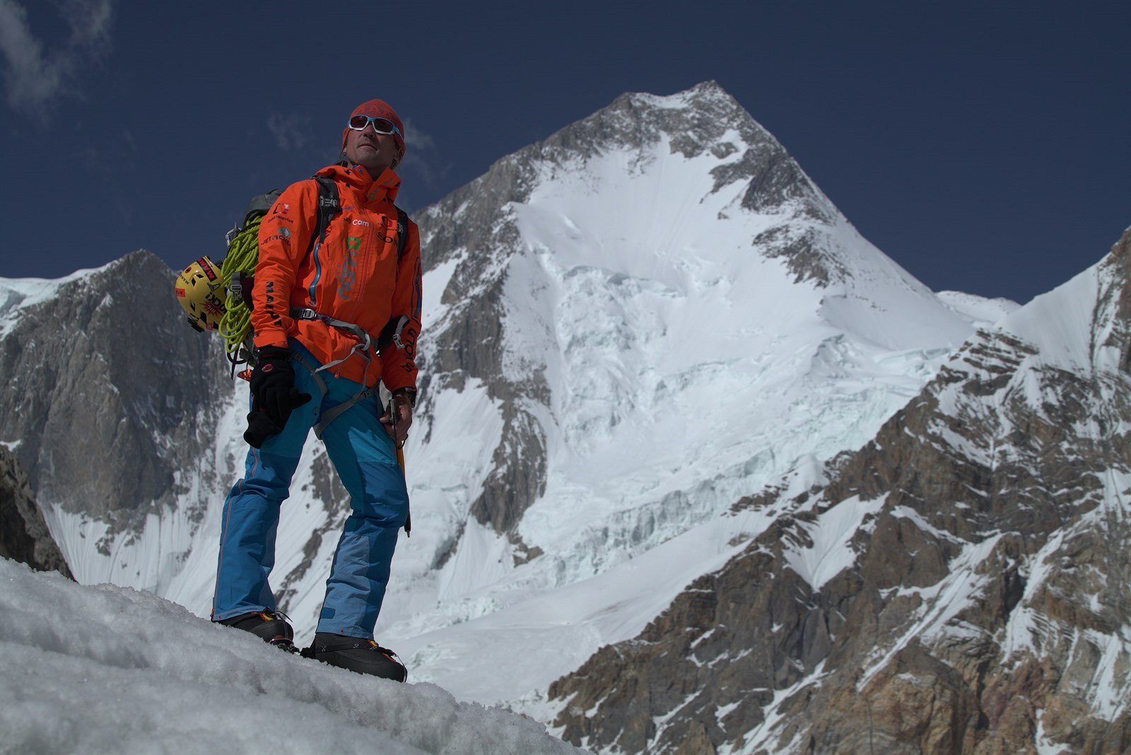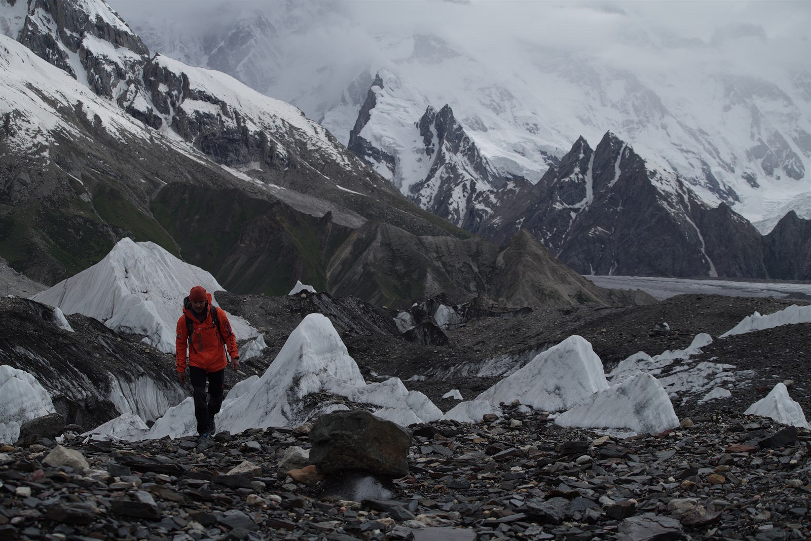 Horolezec Marek Holeček uprostřed hor v Gasherbrumu.