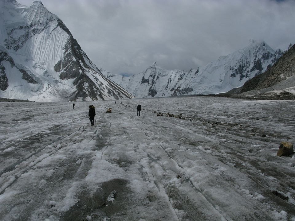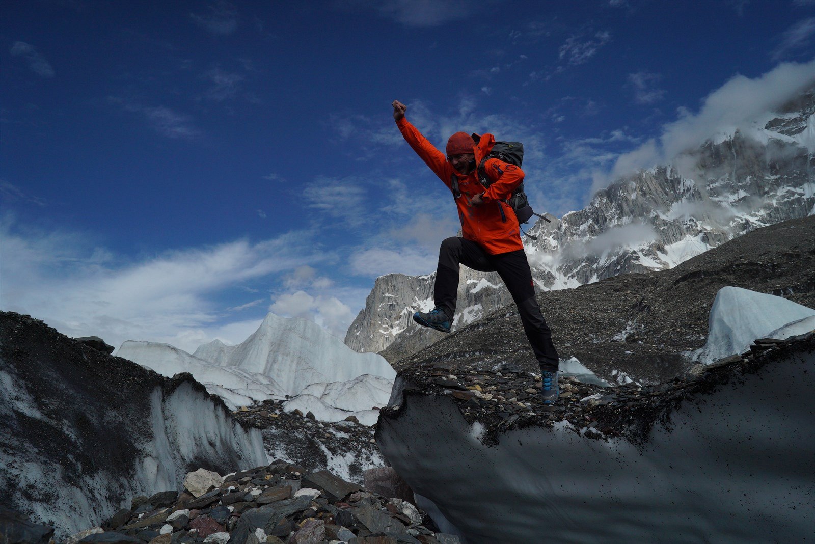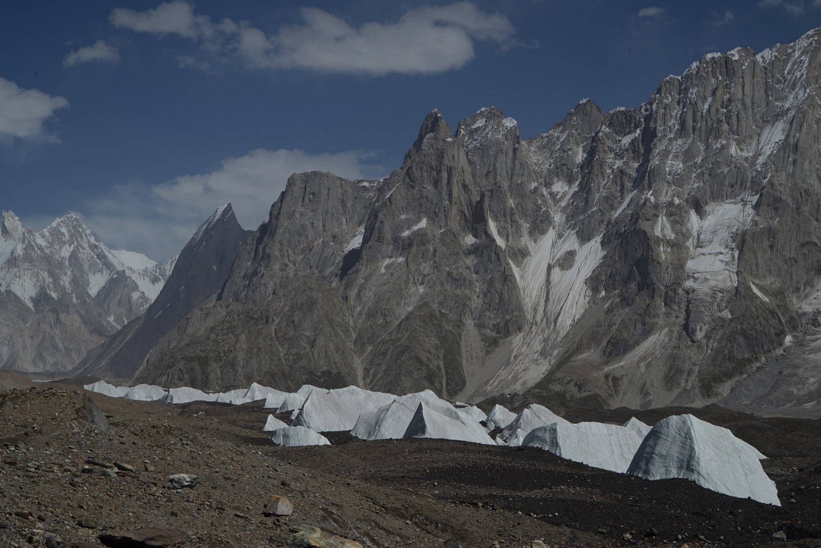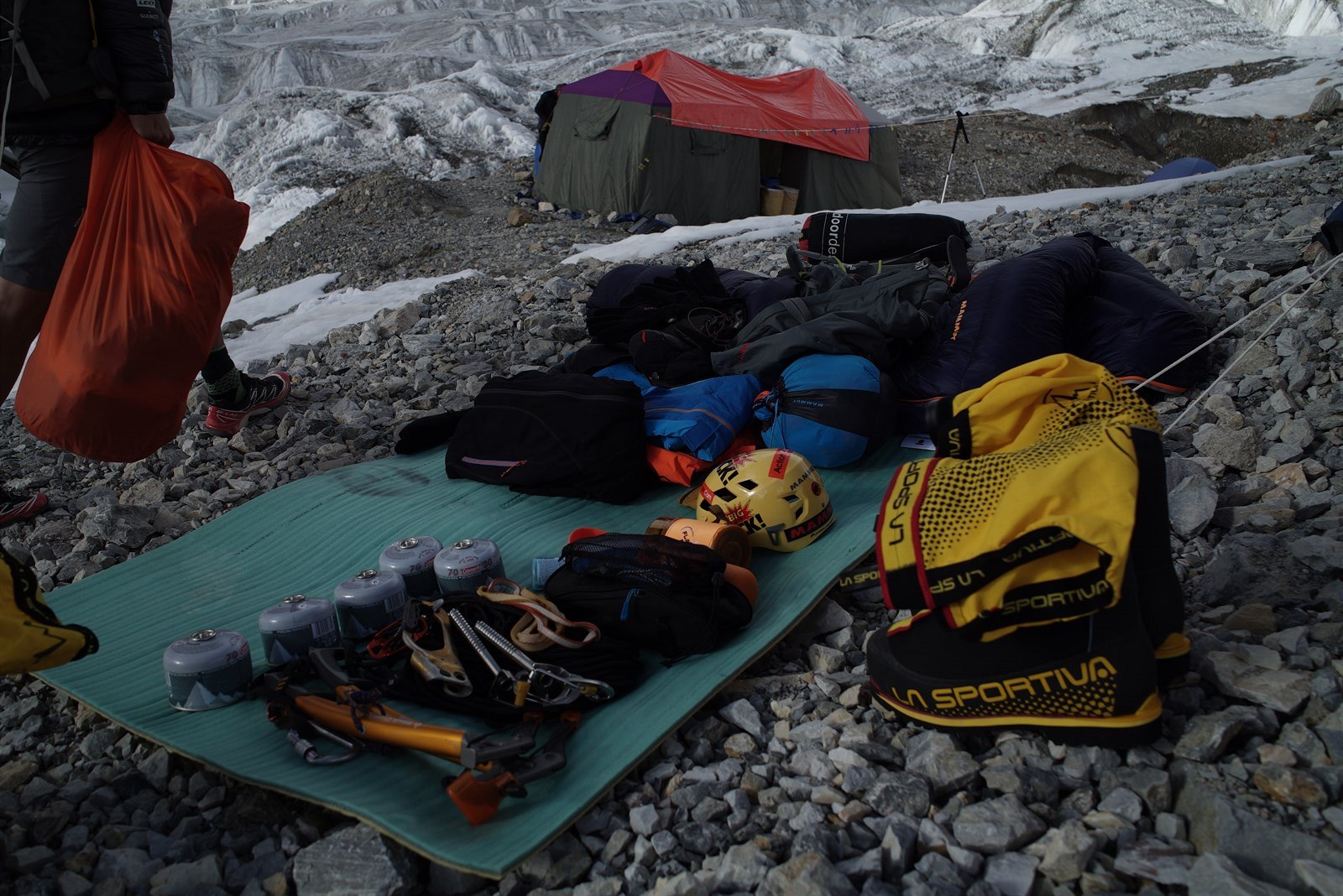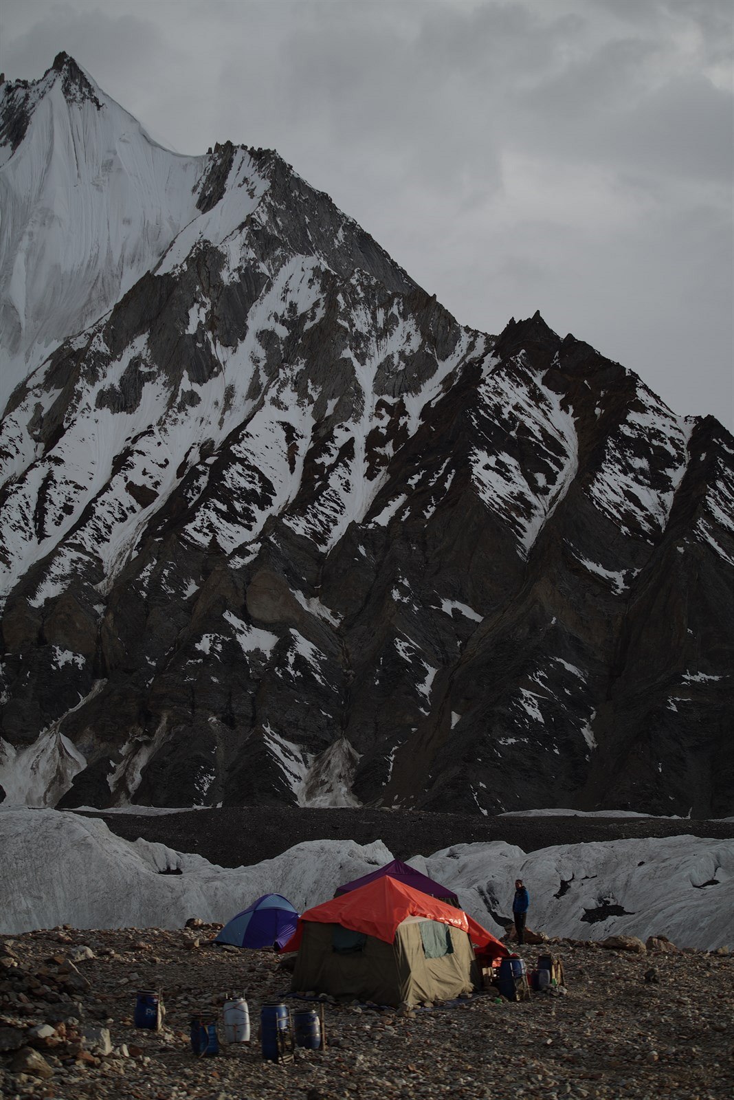 Máme již vystavěný Base Camp na hřebenu kamenité morény, kterou z obou stran, obtéká mohutný rozervaný ledovec.