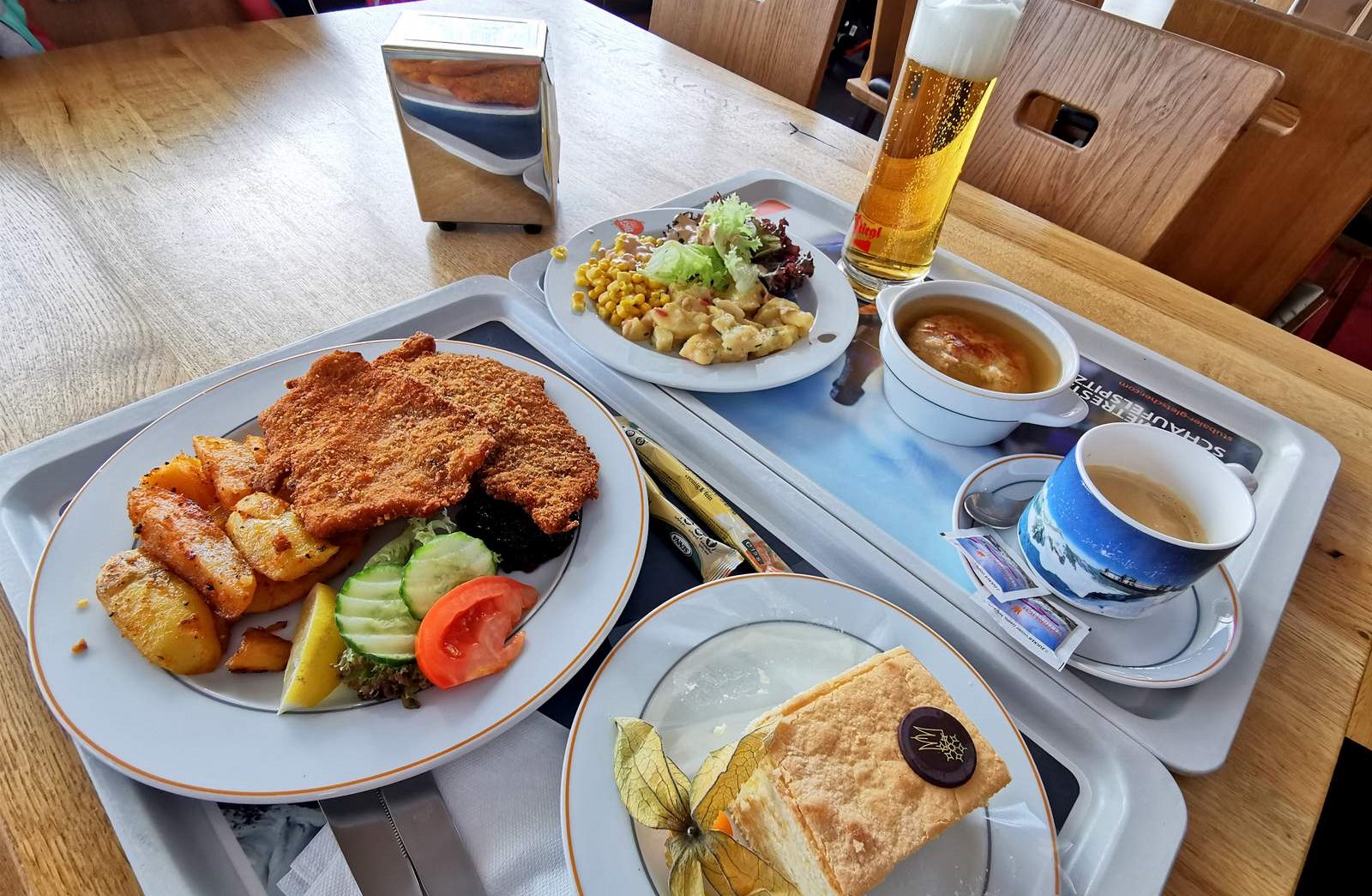 Na oběd můžete zajít do restaurace na Jochdohle na nejvyšším bodě střediska (pokud nefouká silný vítr, jako nám, pak je tato část zavřená), nebo do obslužné restaurace Gamsgarten či do samoobslužné restaurace Eisgrat.