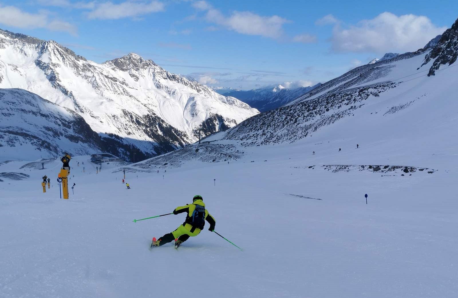 Celkově jsou tratě na Stubai jen minimálně členité a dostatečně široké. My jsme tu navíc před Vánocemi narazili na téměř prázdné sjezdovky, takže jsme mohli plně využívat radiusů našich lyží.