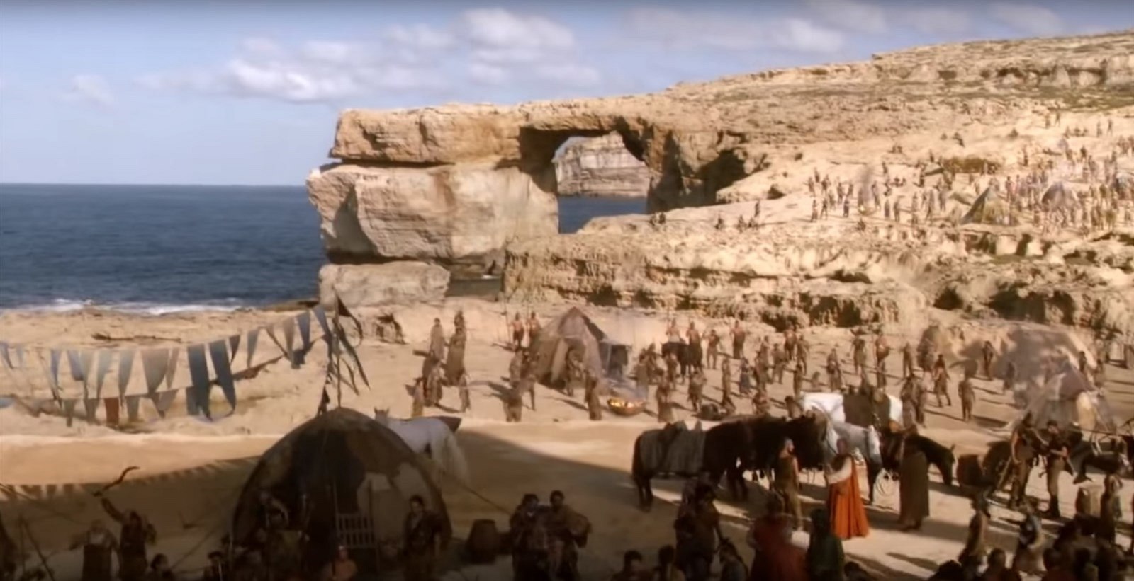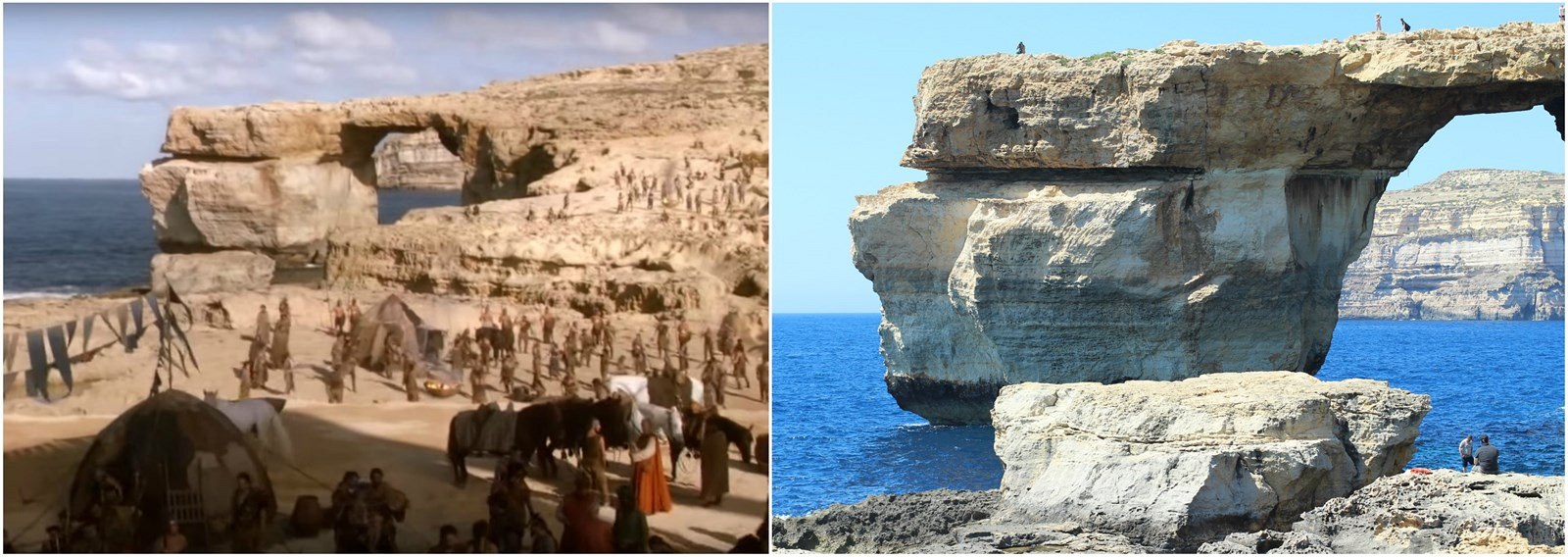 Azurové okno patří nejen mezi jeden z přírodních divů Malty. V seriálu se u něj udála svatba Daenerys a Khala Droga.
