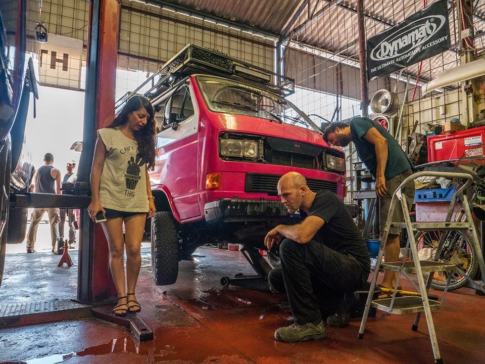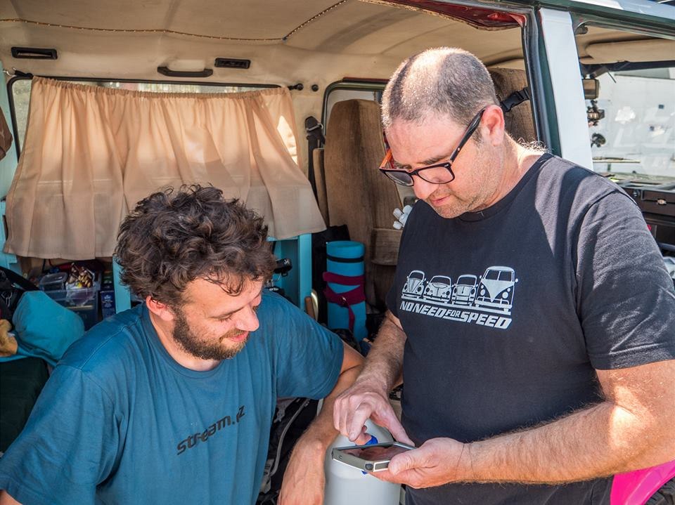 VW Klub je přátelská komunita lidí. Ron, učitel filmu, motorkář a hrdý majitel oranžového brouka nám radí, ať nepodceňujeme horko a pořádně pijeme, Izrael.