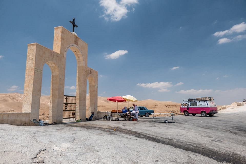 U brány v Judské poušti, 40°C, na oslíka, kterého nám nabízeli, nám nezbyly peníze.