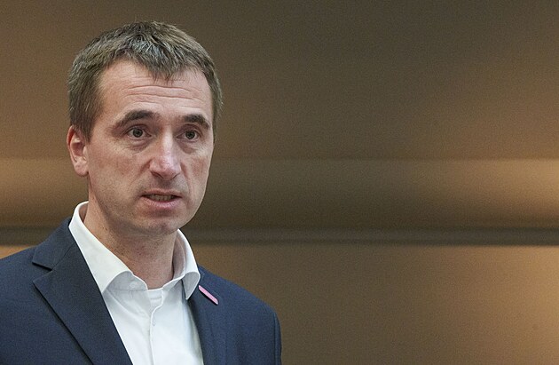 Tisková konference Starostů. Na snímku Lukáš Vlček. (13. listopadu 2025)