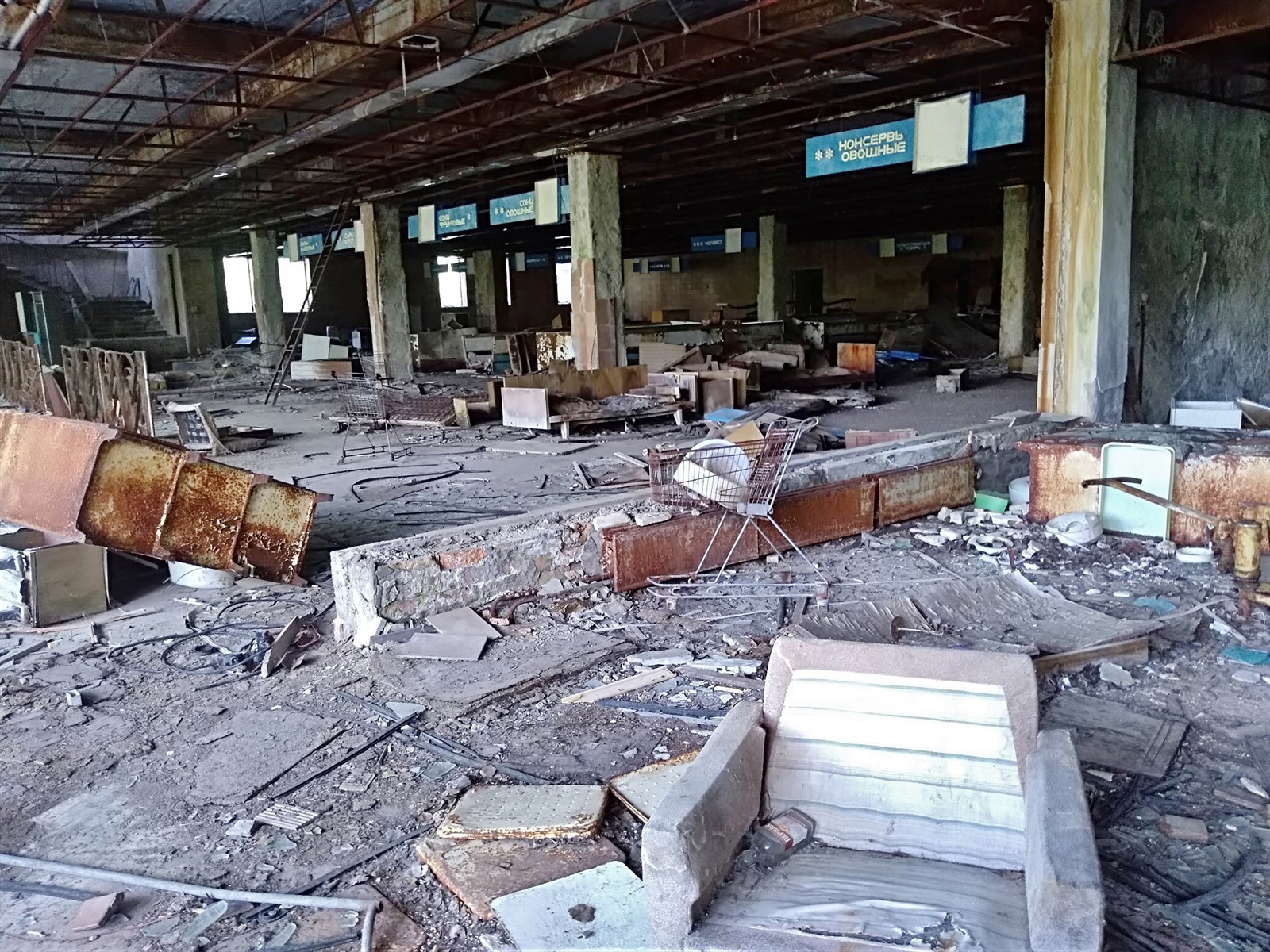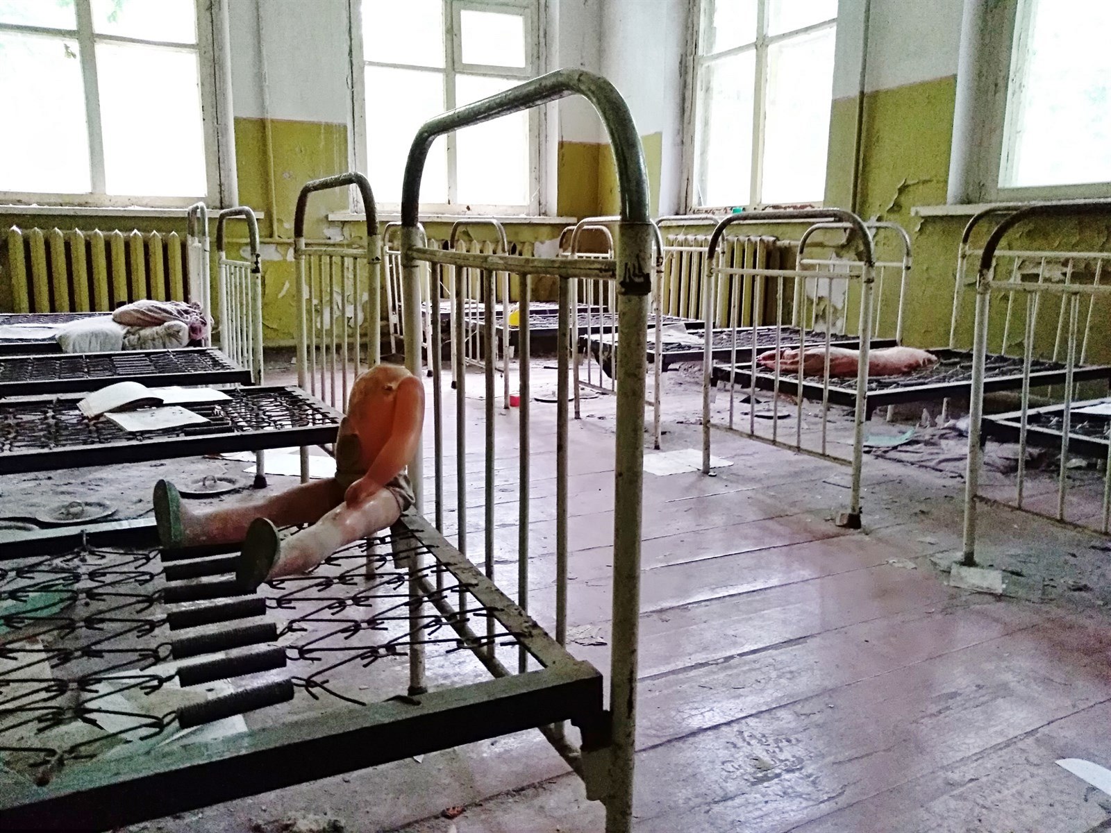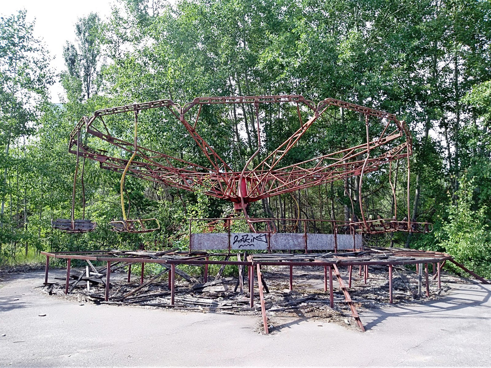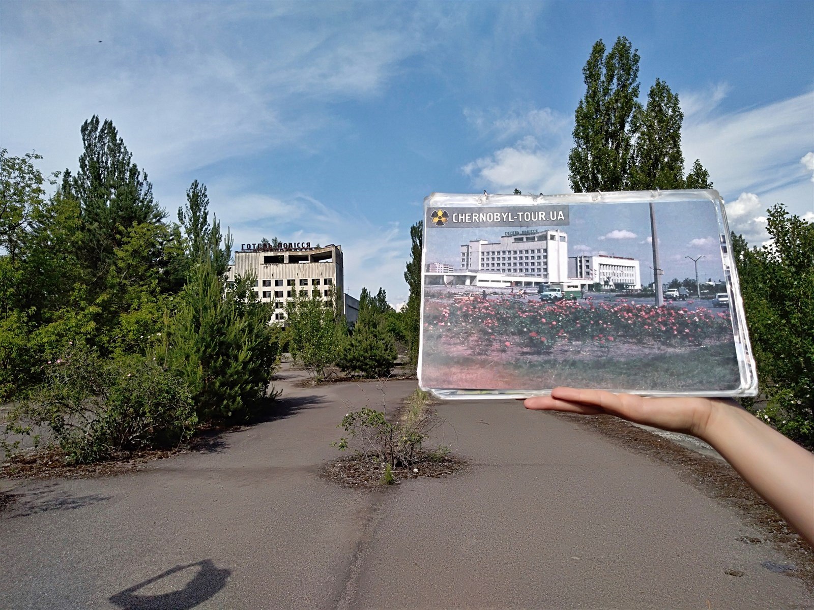 Tehdy a teď - výhled na hotel Polesí v Pripjati.