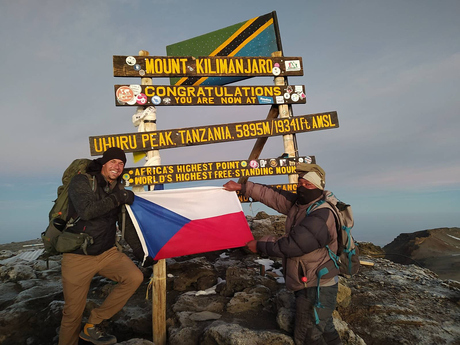 Jan Darmovzal při dosažení vrcholu nejvyšší hory Afriky