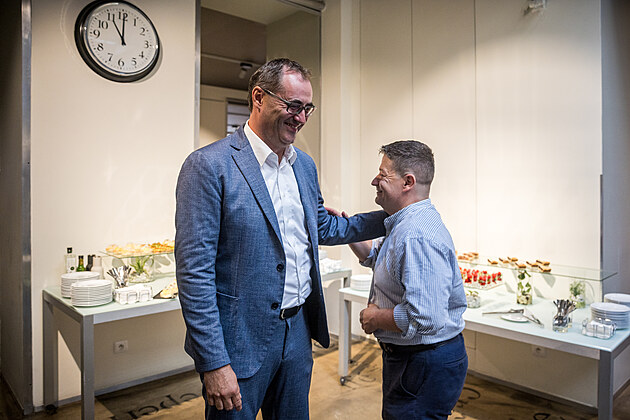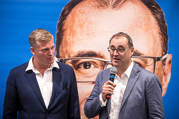 Zahájení kampaně do Senátu kandidáta Borise Šťastného (vpravo) za hnutí Motoristé sobě s podporou hnutí ANO. Vedle něj Filip Turek (16. srpna 2024)