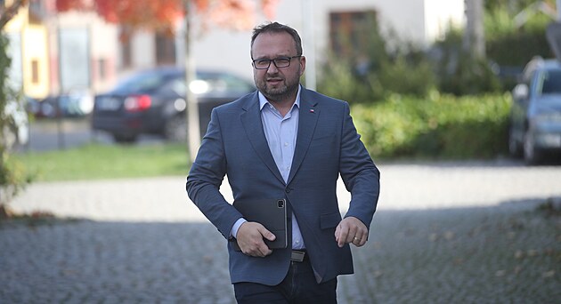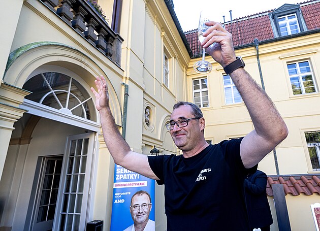 Boris Šťastný (Motoristé) má radost z volebních výsledků. (21. září 2024)