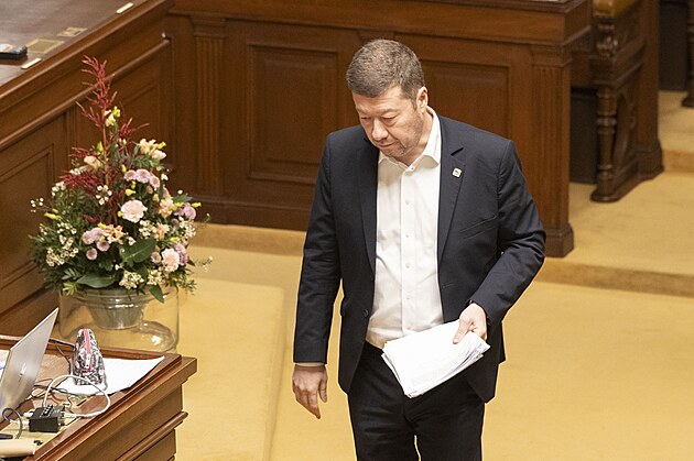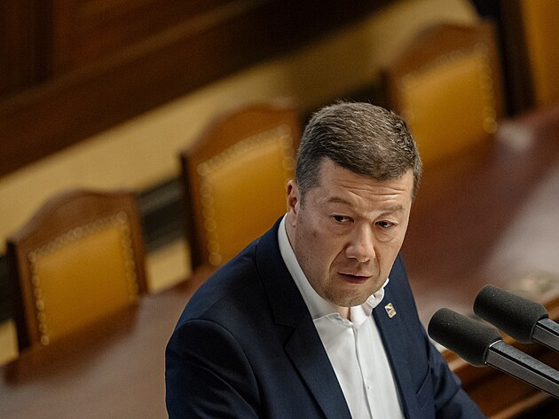 Předseda SPD Tomio Okamura ve Sněmovně (22. dubna 2025)