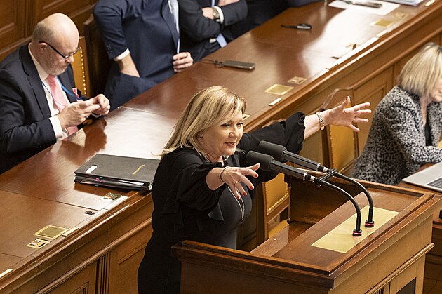 Poslanci přehlasovali veto prezidenta a schválili zvýšení platů vrcholných politiků. Na snímku je Alena Schillerová (ANO). (4. března 2025)