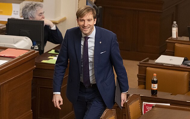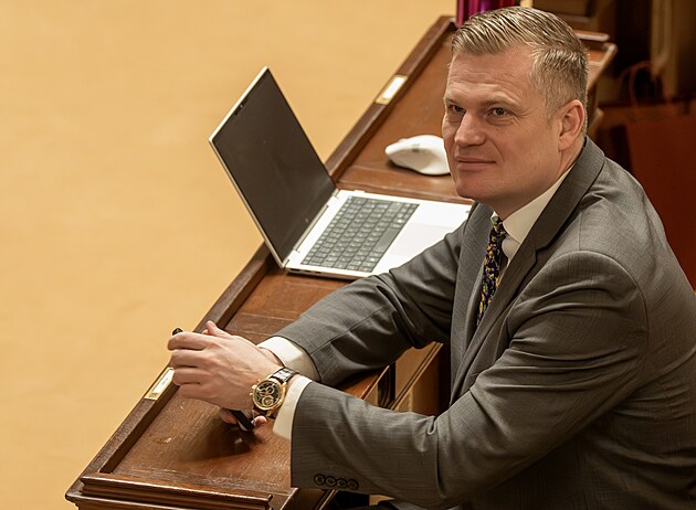 Mimořádná schůze Poslanecké sněmovny k vyslovení nedůvěry vládě. Na snímku ministr zemědělství Martin Šebestyán (SPD). (3. února 2026)
