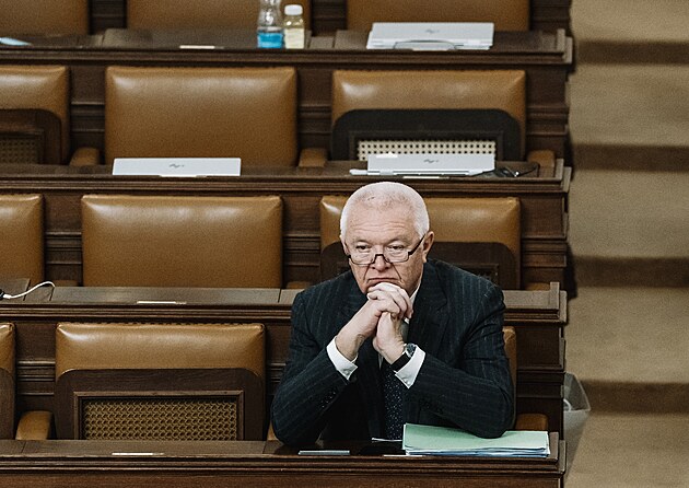 Mimořádná schůze Poslanecké sněmovny k vyslovení nedůvěry vládě. Na snímku ministr kultury Oto Klempíř (Motoristé sobě). (3. února 2026)