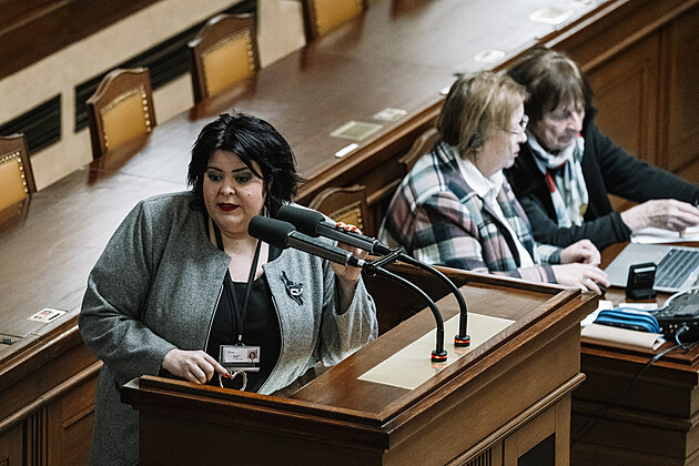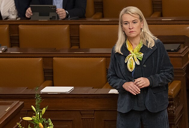 Mimořádná schůze Poslanecké sněmovny k vyslovení nedůvěry vládě. Na snímku Monika Hubíková (ANO). (3. února 2026)