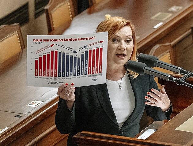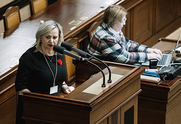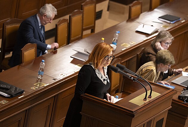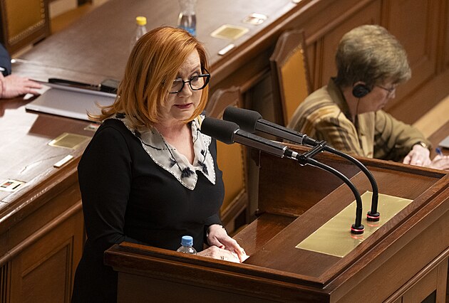 Pokračuje mimořádná schůze Sněmovny k hlasování o nedůvěře vládě premiéra Andreje Babiše. Na snímku Renata Oulehlová (ANO). (4. února 2026)