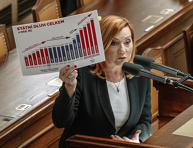Mimořádná schůze Poslanecké sněmovny k vyslovení nedůvěry vládě. Na snímku Alena Schillerová (ANO). (3. února 2026)