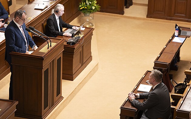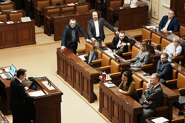 Pokračuje mimořádná schůze Sněmovny k hlasování o nedůvěře vládě premiéra Andreje Babiše. (4. února 2026)