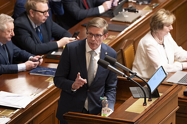 Mimořádná schůze Poslanecké sněmovny k vyslovení nedůvěry vládě. Na snímku Karel Havlíček (ANO). (3. února 2026)