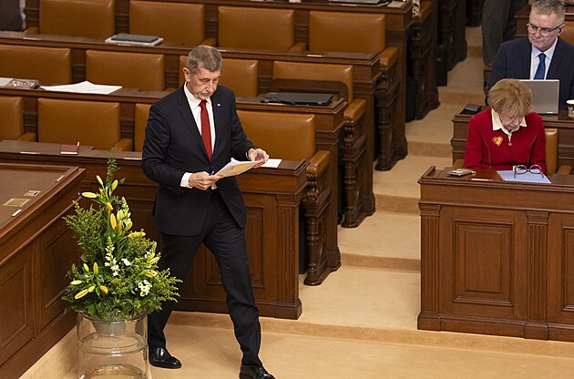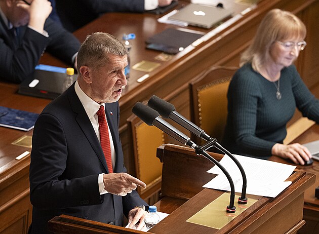Mimořádná schůze Poslanecké sněmovny k vyslovení nedůvěry vládě. Na snímku premiér Andrej Babiš (ANO). (3. února 2026)