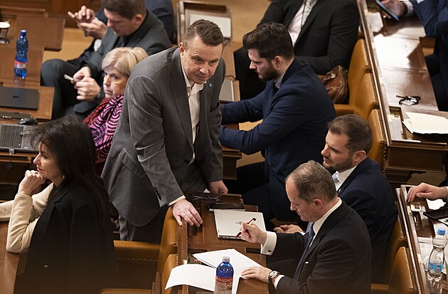 Pokračuje mimořádná schůze Sněmovny k hlasování o nedůvěře vládě premiéra Andreje Babiše. Na snímku Patrik Nacher (ANO). (4. února 2026)