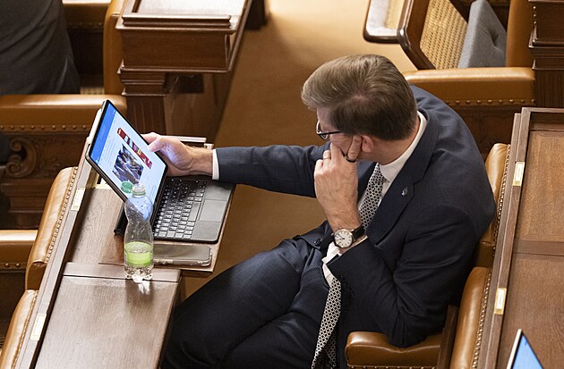 Mimořádná schůze Poslanecké sněmovny k vyslovení nedůvěry vládě. Na snímku Martin Kupka (ODS). (3. února 2026)