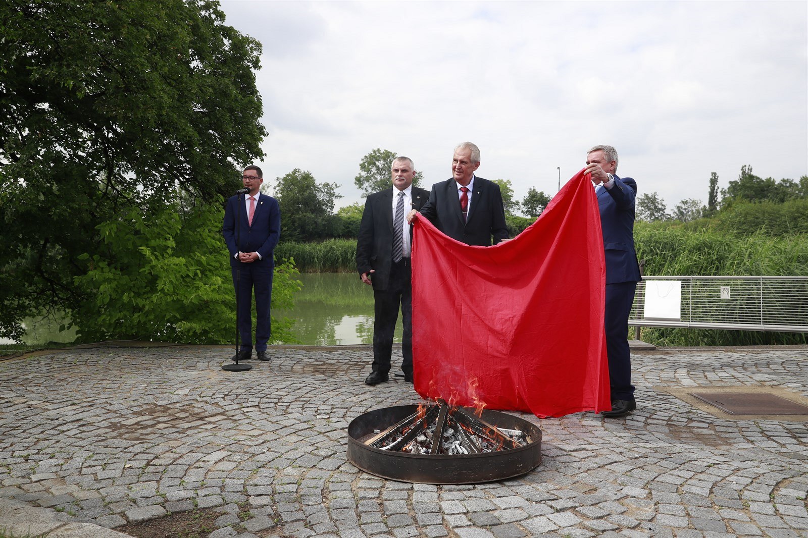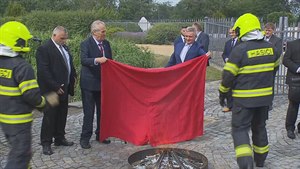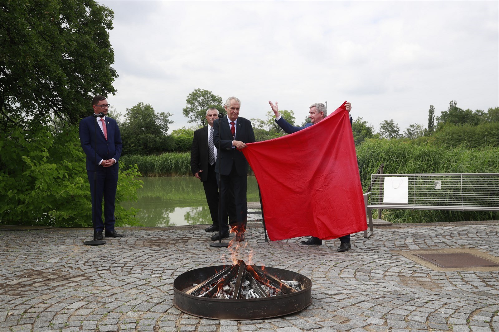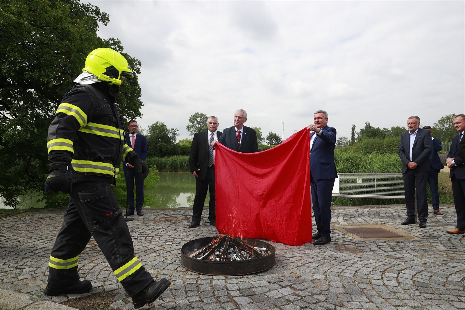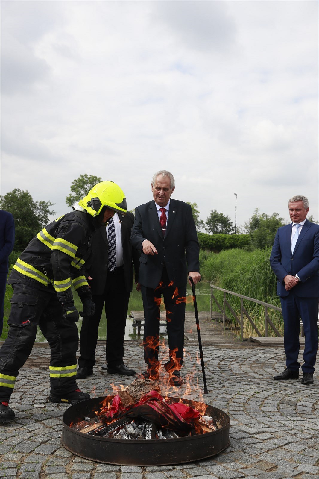 Zeman připravil happening. Za asistence hasičů nechal spálit červené trenýrky.