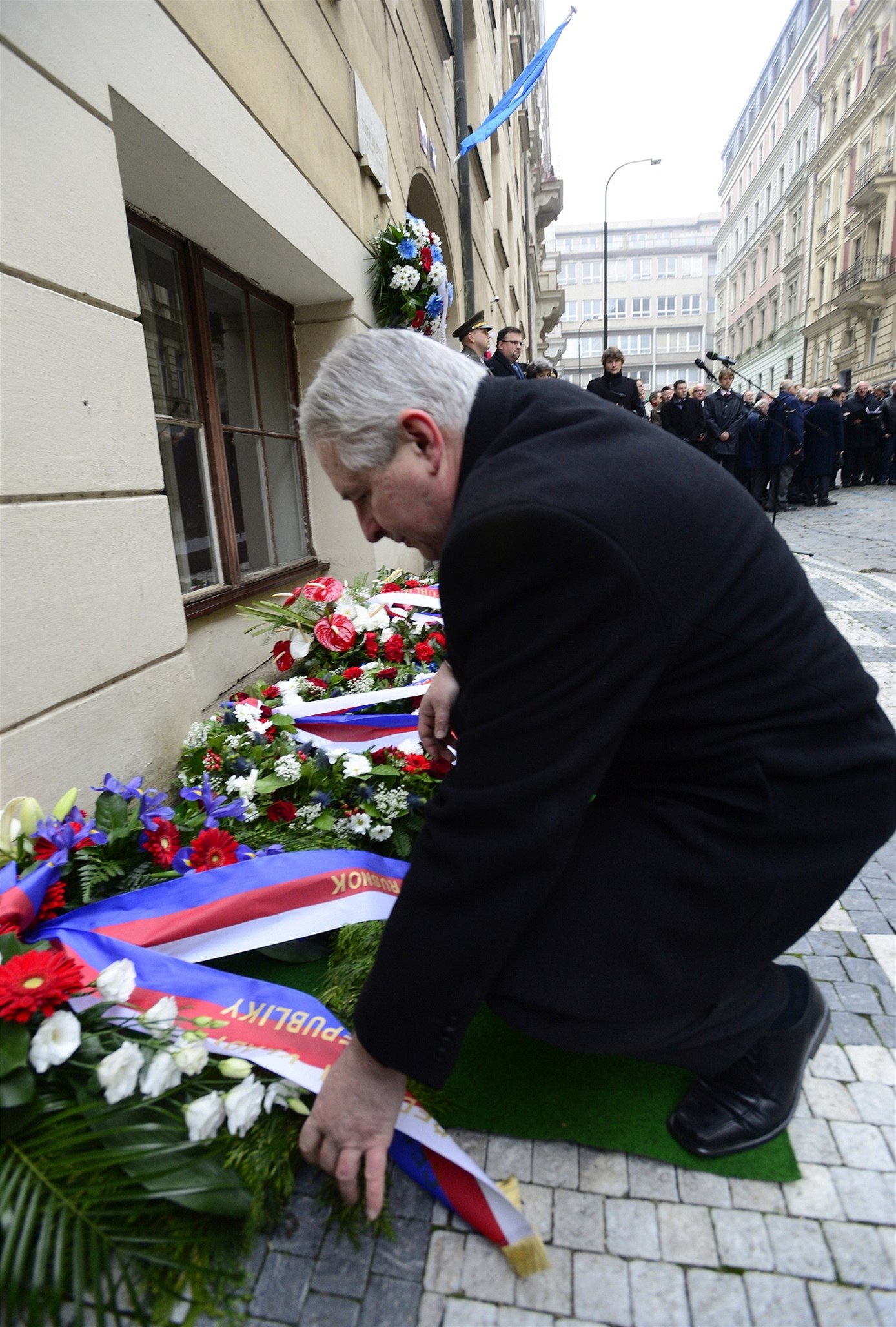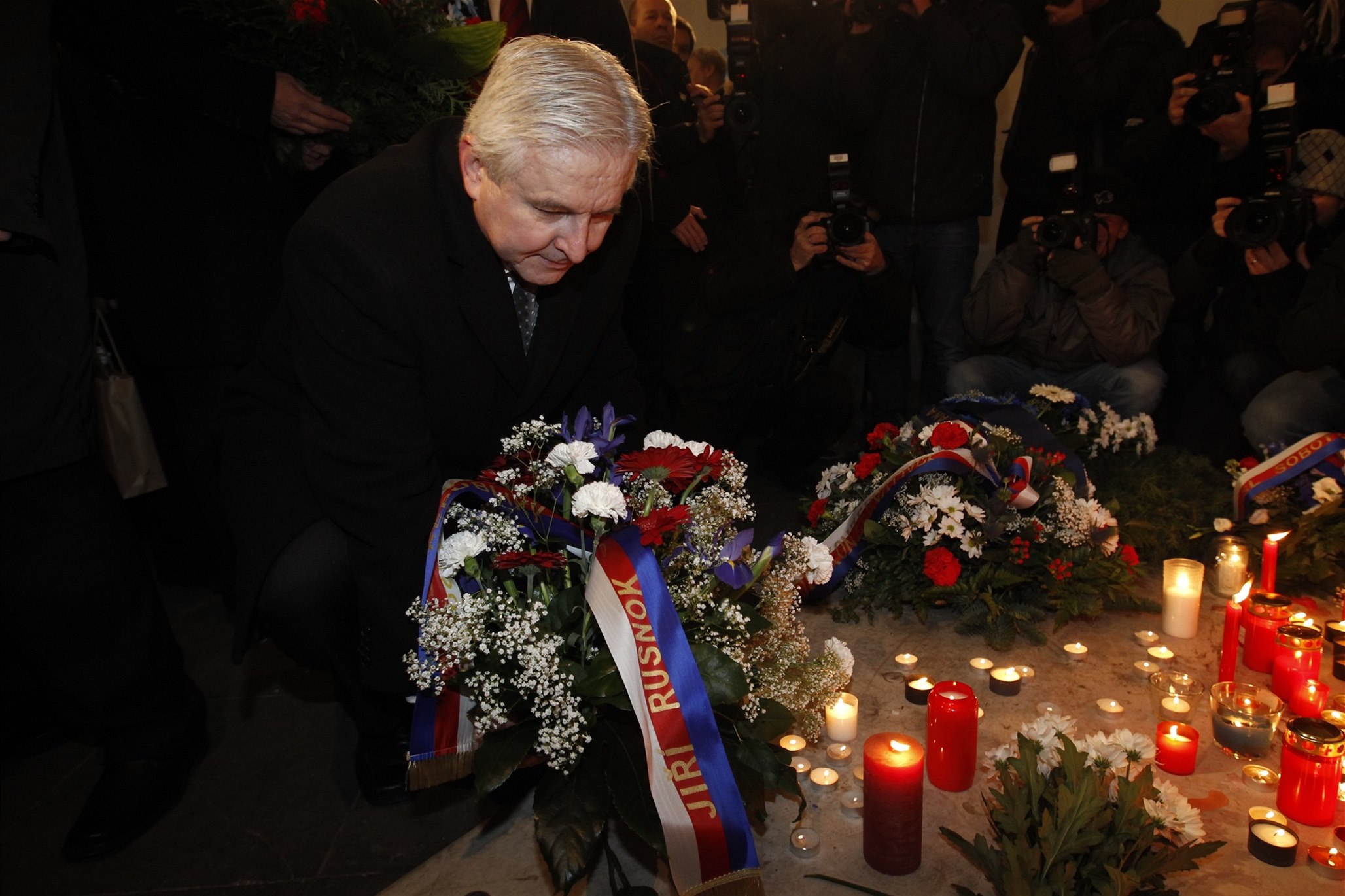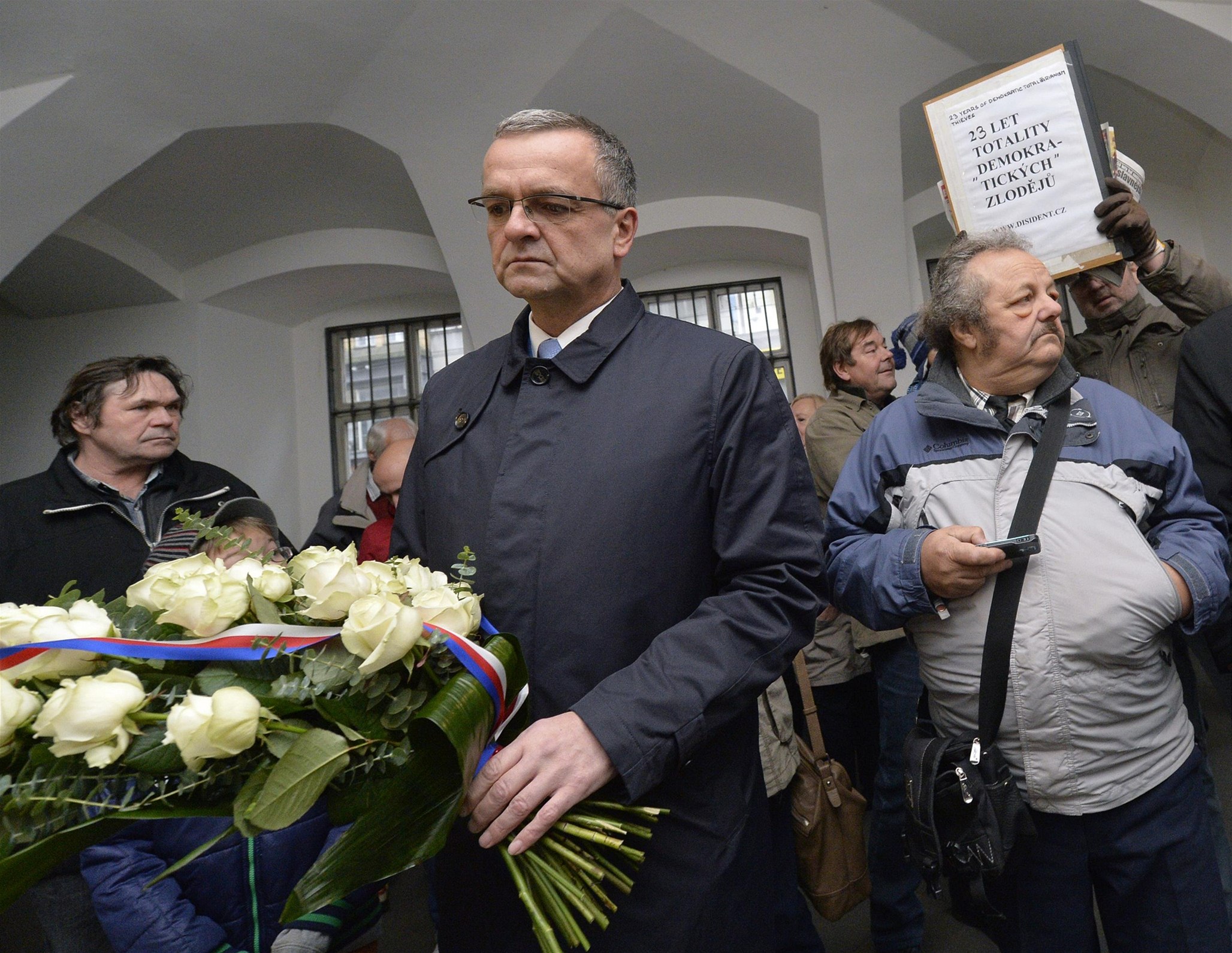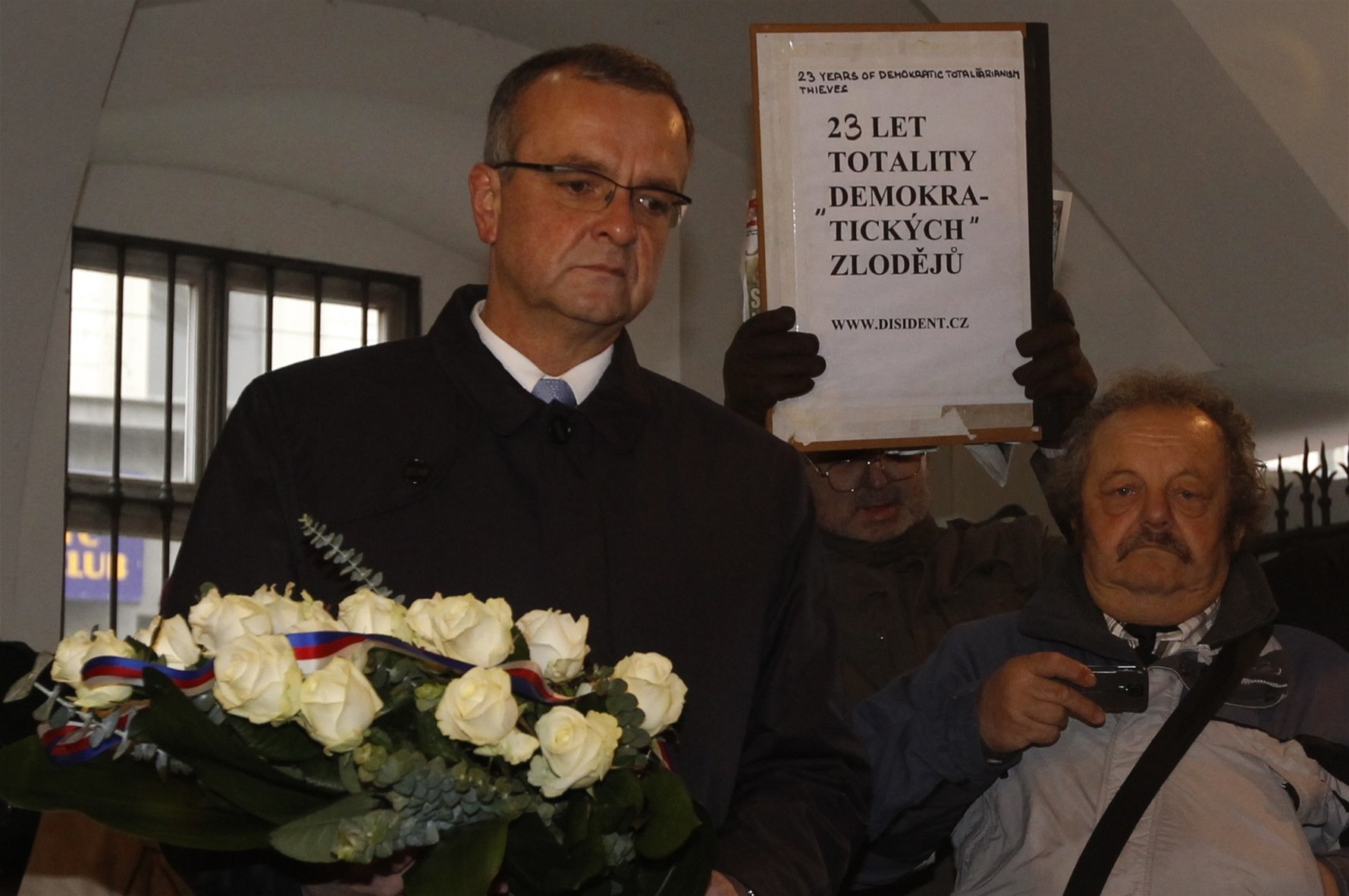 Premiér v demisi Jiří Rusnok položil 17. listopadu na pražské Národní třídě kytici k pamětní desce na připomínající události, které vedly k pádu komunistického režimu.