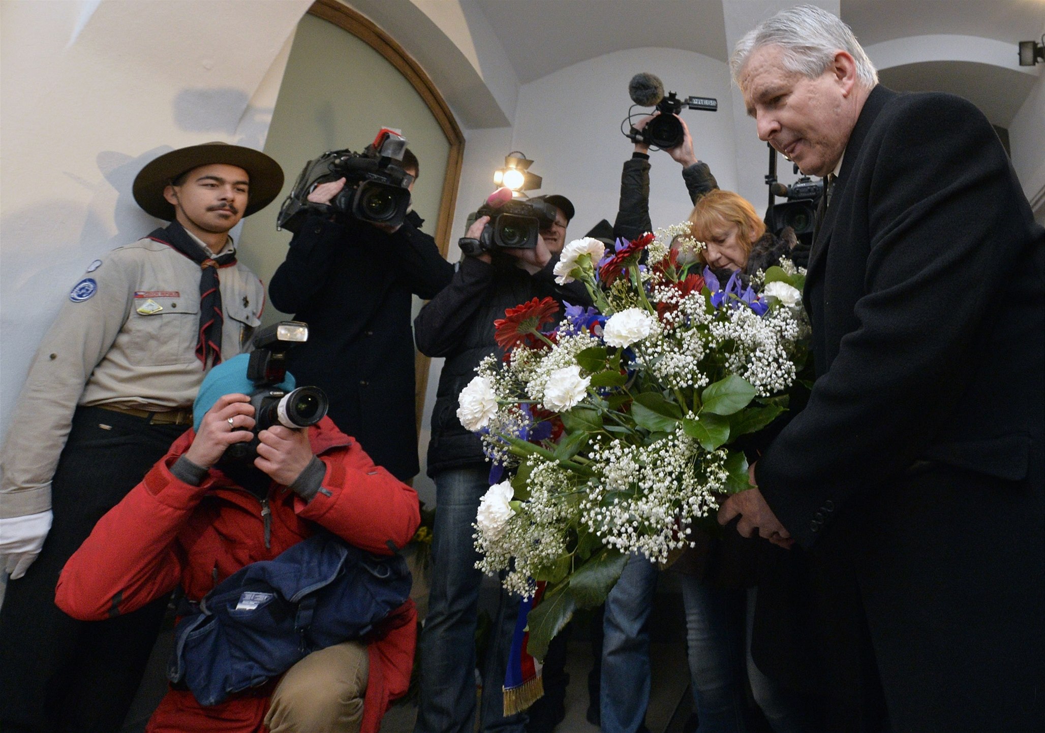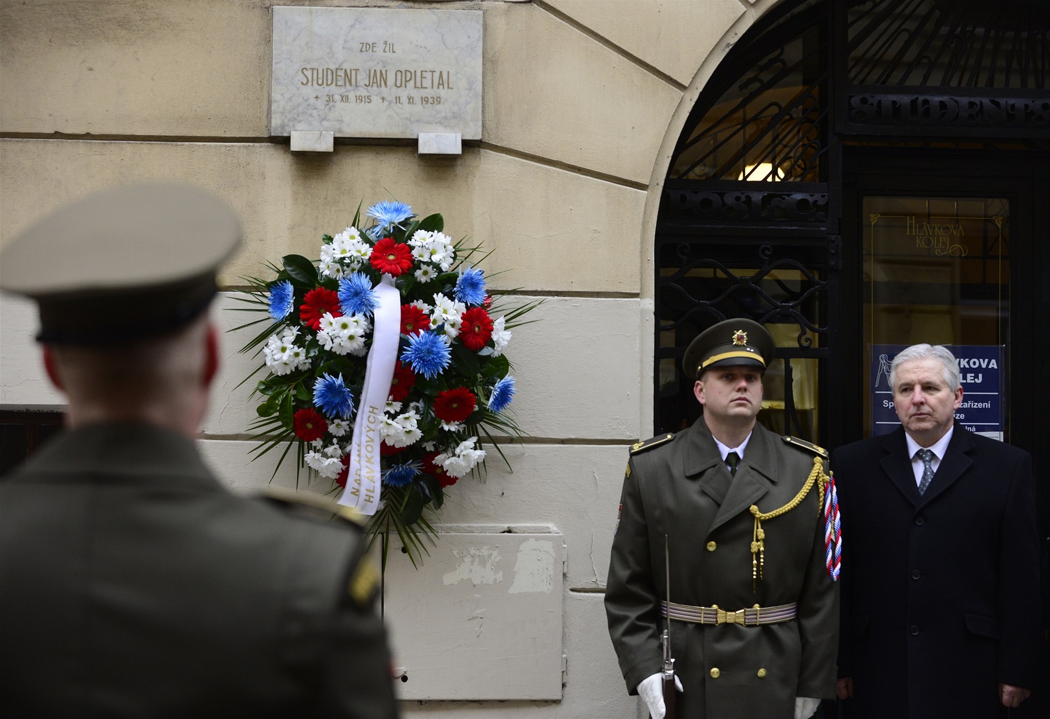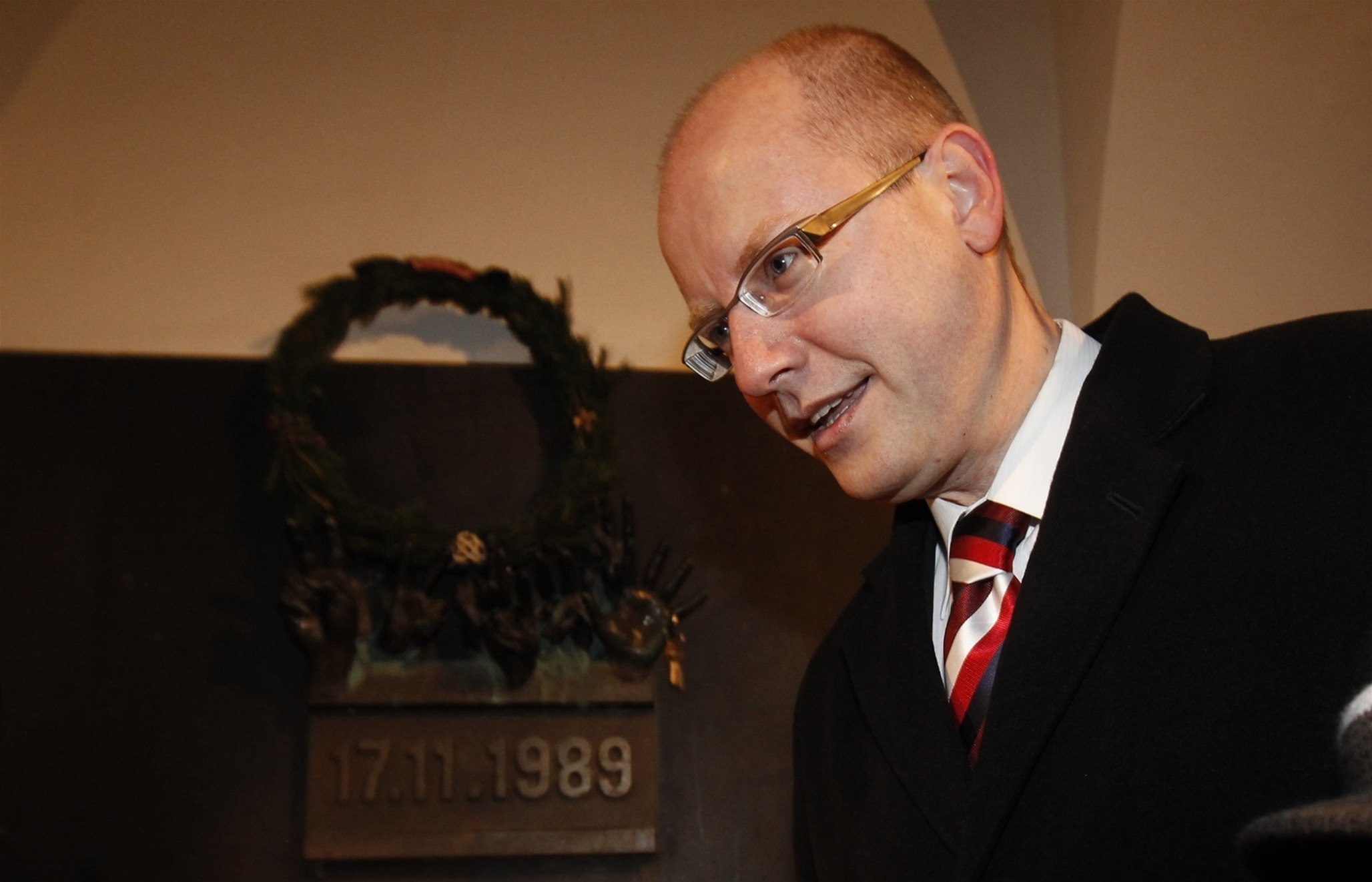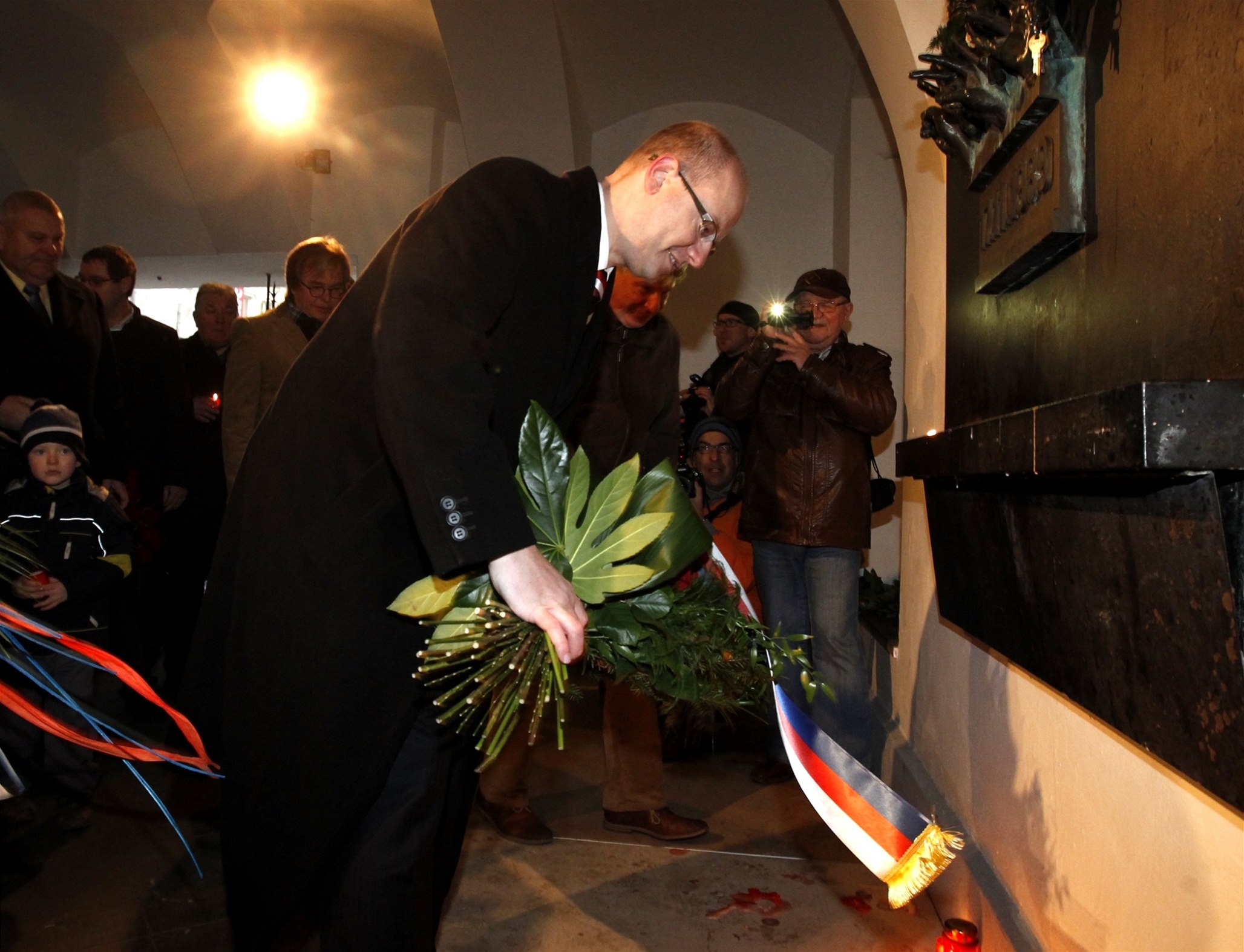 Premiér v demisi Jiří Rusnok položil 17. listopadu na pražské Národní třídě kytici k pamětní desce na připomínající události, které vedly k pádu komunistického režimu.